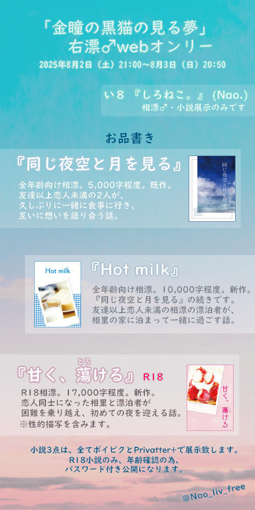 右漂♂webオンリー「金瞳の黒猫の見る夢」のお品書きです。