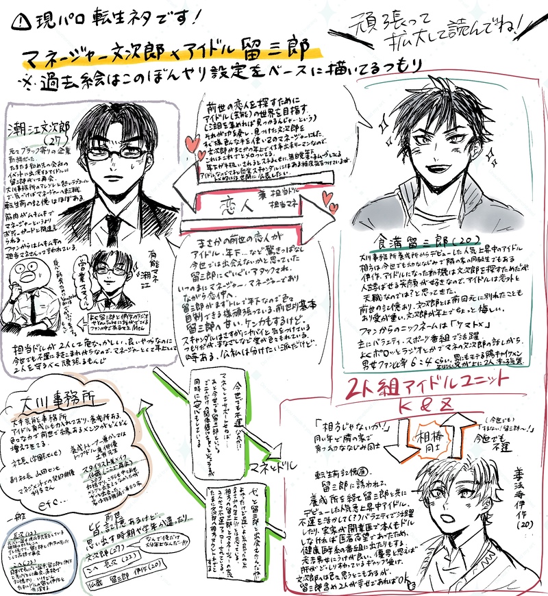 マネージャー文次郎×アイドル留三郎のもんけま 絵やら妄想まとめです〜!