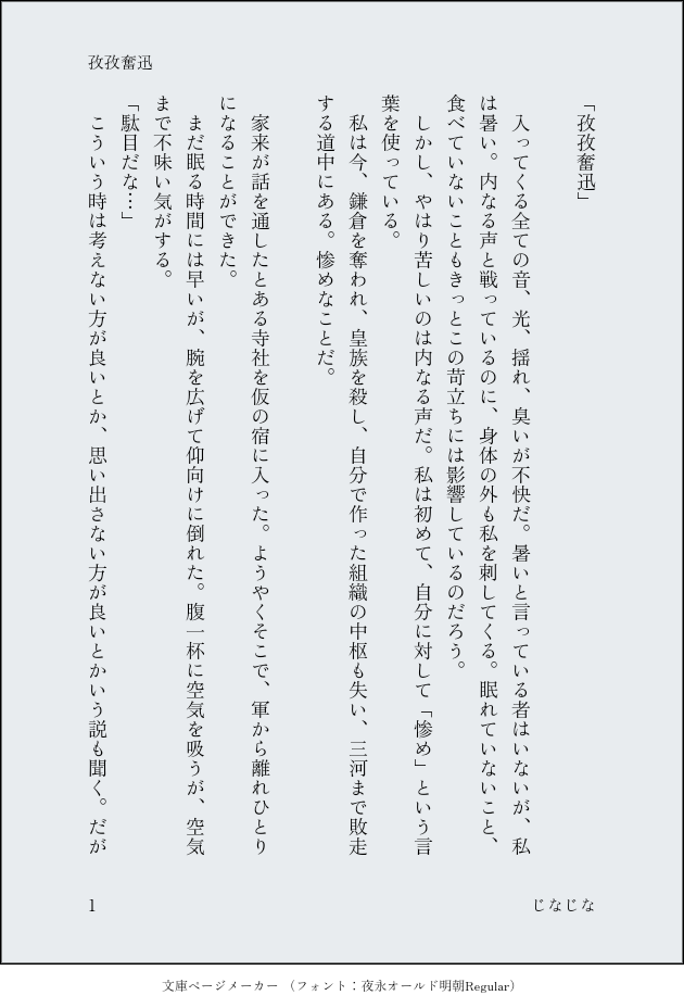 じなじな☆quiet followDONE直尊「孜々奮迅」こちらもドロライに参加したものです。鎌倉陥落で落ち込んだ直義が兄への想いを複雑化させる所から始まります。直接描写はありませんしR15にもなりませんが、ワンクッションだけ… show all(+13 images) Tap to full screen (size:630x928).Repost is prohibited Let's send reactions! freqpopularsnackothersPayment processing Replies from the creator Follow creator you care about!☆quiet follow じなじなDONER18 高尊「蜜月 夢の中から・夢の中へ」本誌、純愛でしたね…神力直補充のために人事不省のtkujを見守るmrnoのお話です。 21 じなじなDONE直尊「秘密を持つ兄弟」(全年齢)直義が送った袖のその後、というお題を頂きまして書いたものです。兄弟大好き! 7 じなじなDOODLE高尊「日の差さない場所」(全年齢)尊氏の髪の長さについて、というお題をまろから頂きまして、書いたものです。元服したての高氏です。 8 じなじなDONE直尊「紙の上、美しき兄弟」(全年齢)弟兄のドロライ企画の最終回に書いたものです。中先代後になかなか会えなくなって寂しくなった直義から始まります。幸せの追及… 25 じなじなDONE高尊「蛍の夜」全年齢楠木邸襲撃の後、ふたりきりで闇の中をデートするお話 10 じなじなDONE直尊「孜々奮迅」こちらもドロライに参加したものです。鎌倉陥落で落ち込んだ直義が兄への想いを複雑化させる所から始まります。直接描写はありませんしR15にもなりませんが、ワンクッションだけ… 14 recommended works はむたまDOODLEあなたが知っていること 知らないこと2024/7/7開催のアナザートランスフォーメーションの展示漫画です。トランスフォーマーアドベンチャーのサイドスワイプとバンブルビーのお話です。少しオプティマスも…全部知ることはできないけど、知っていることが増えたらうれしい…そんなお話です!読みに来てくれてありがとうございます…! 8 kinona_omochiDOODLE 4 おやぶDOODLE⚠️【バッドエンド√】tkb攻めラス様xスキアrkgk🙏 未定🍑PROGRESS夢に出てきた子たち描いてる〜 中璃。DONE正イデほよん立ち絵だよ 鳥羽つくねDONE👧 4 sppamu_tyoSPOILERB'ASHネタバレ グロい 4 miraclambDONER18 広巨 ⚠︎︎ちょっと苦しそうpass18↑? 4 岸川珪花TRAINING今更ながらPinterest便利ですね。背景は苦手。(2025/01/10) 3