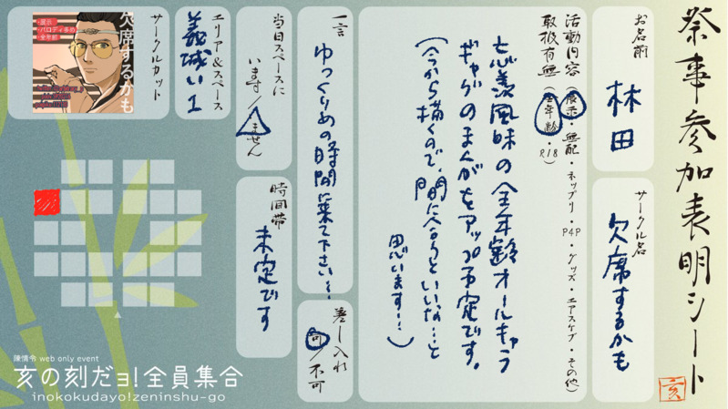 1/22-23開催のCQLwebオンリーに参加予定の身なのですが、約10日前から展示物を描き始めるという怠慢ぶりです。たぶん、何かはできる予定です。