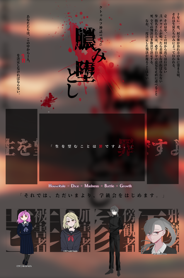 serei_roreru☆quiet followINFOcoc6[膿み堕とし]作者/はっぱやで様KP/宵闇カノンさんPC/PLHO壱/薮谷 玲緒奈/ライラックさんHO弐/里山 泰華/でぃしるさんHO参/有栖川 薫/otyabaa!さんHO伍/佐竹 信之/ツヨキチ1生還3ロスト「俺はお前の幸せを考える。お前がしてくれたように」 Tap to full screen (size:628x945).Repost is prohibited Let's send reactions! freqpopularsnackothersPayment processing Replies from the creator Follow creator you care about!☆quiet follow serei_roreruINFOcoc[されど拳は烈火の如く]作者/KP紅獅香さんPC/PLHO1/織田 琳太郎/ツヨキチHO2/龍石 翔/のっとさんHO3/服部 晩成/サラダ巻きさんHO4/ジョン・E・ジョンソン/まつさん全生還「吾輩の覇道はこれからである!!」 serei_roreruINFO[Check 1, 2,]作者/KP でぃしるさんKPCらん/sukakePC/PL浅尾 大智/ツヨキチ「あぁ...…耳の手当てをしないとですね」 serei_roreruINFOエモクロア[1072]作者/MonsterZ MATE Official Store様KP/ionさんPC/PL十河 和弥/ツヨキチ「必ず幸せにしますからね」 serei_roreruINFO[私のダイアリー]作者/むつー様KP/ionさんPL/ツヨキチこれマジで面白かった serei_roreruINFOcoc6[あトの祀リ-緋の宴-]作者/つきめぐり つきのわむく様KP/宵闇カノンさんHO壱/印部 朱鷺/テリリさんHO弐/羽柴 秀清/ツヨキチHO参/帳 恭平/愁果さんHO肆/泉川 尋華/まめだいふくさん「僕が幸せにするからね。朱鷺」 serei_roreruINFOcoc6[累卵]作者/終末絶望卓様KP/狐コンコンさんPC/PLHO1/科戸 亜月/otyabaa!さんHO2/朽木 燐/ツヨキチエンド4全生還「おはぎ買ったが喜ぶか...…?」 recommended works @キュマ/小熊奈津SPOILER御井流伍のキャラシまとめ3ページ目(最後のページ)から【きみは100億万ドル】ネタバレあり、未通過者×なんだかんだでこいつもSAN値が20代ちなみにイメージcvは津田健○郎中の人がつだけん振られたのは2回目ですがそんないい声してないです。記念絵は▶︎ https://poipiku.com/1302620/4396961.html 3 365_nemumiPROGRESS大神実は特徴表のせいで大富豪のペットっていうのがついていたので、探索者に狼の耳と尻尾つけました()元が狼だから苗字が「大神」、狼だという事を隠しているから隠す隠れるって意味の「ハイド」って名前つけました🥰狼姿はバレなかったので、シナリオ終了後みんなに見せました😘 3 NIKAIkitSPOILERきみは100億万ドル げんみ× 羽柴みおDONEきみは100億万ドル げんみ× 差分です!見てください!ネタバレ注意! -木黛-DOODLE狗 2 AnnaSarinaDOODLE[InuShiba] 16-Daz and 16-Chu 8 donDOODLEすけべ挿入うったかお題箱から台詞を頂きました🫶 ☠️🍄☠️MOURNINGストライク★ゴールドマン 立ち絵&差分 22 cyan_CMYKPAST2冊目の同人誌 ぺらぺらです作中で黒岩がサポーターって言ってるのは彼はスポーツ関係でしかあれを見たことがないからですpass:ヒーリングパラドックスdeeper下巻の描き下ろし「そして…」が始まるページの2コマ目の黒岩のスマホ画面の時刻(数字4つ) 10