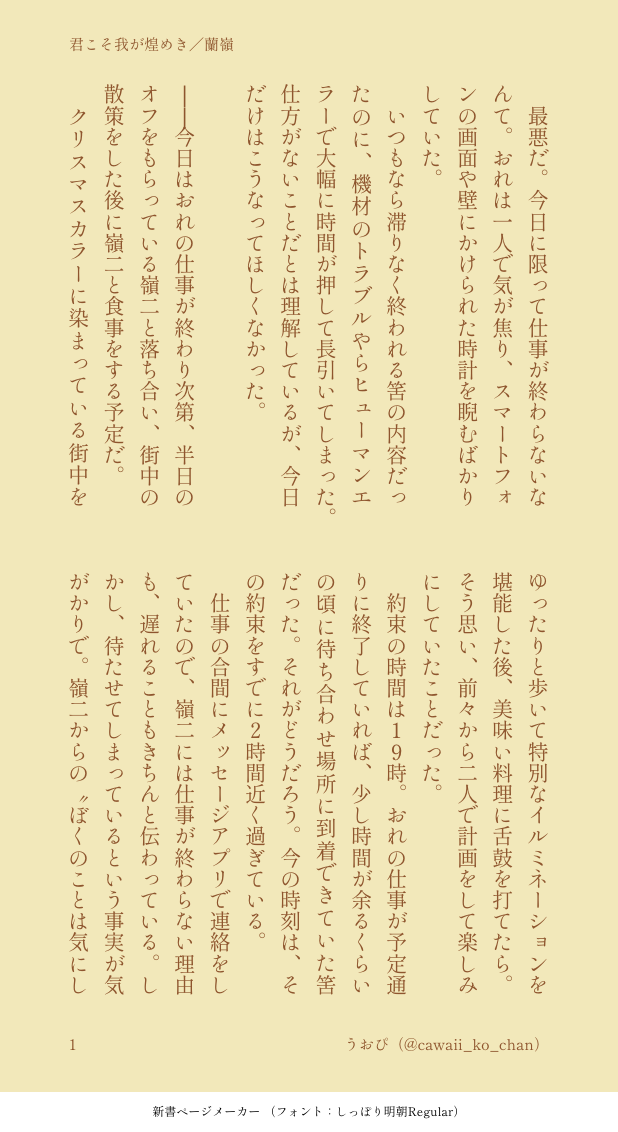 うおぴ☆quiet followDONE蘭嶺。アドカレ企画の作品です。クリスマスイブの1週間前、クリスマスデートをする予定が叶わなかった2人の話(ハピエンです) show all(+9 images) Tap to full screen (size:618x1132).Repost is prohibited Let's send reactions! freqpopularsnackothersPayment processing Replies from the creator Follow creator you care about!☆quiet follow うおぴDONE蘭嶺。アドカレ企画の作品です。クリスマスイブの1週間前、クリスマスデートをする予定が叶わなかった2人の話(ハピエンです) 10 うおぴDONE蘭♀嶺♀百合な2人。口調とか一人称はわたしの好みです。ノリと勢いで書いているので、何でも読める方はどうぞ読んでやってください。ぬるめの性的描写ありpass🔑→18歳以上? 3 うおぴDONE蘭嶺(警備員×怪盗)。フォロワーさんが上げられた素敵なイラストをお借りして妄想を広げて書きました。警備員がちょっとおかしいかもしれない(?)pass🔑→18歳以上? 8 うおぴPASTやまヴァン。支部に掲載していたものを少しだけ手直ししました。そんなにえろくないけど、ちょこっとだけちゅっちゅしてるので注意pass🔑→18歳以上? 4 うおぴDONE蘭嶺。短めのちょいセンシティブ3作①思わぬハプニングの話付き合っている2人。らんら自慰バレ、仕事でホテルの同室に宿泊中的な②関係昇格の話セフレの2人、事後のピロートークでのこと③可哀想が可愛い話付き合っている2人。R-18(“可哀想”だけど酷いことは何もしていないです)pass🔑→18歳以上? 6 うおぴDONE蘭嶺。付き合い始めて体を重ねるようになってから、らんらに見つめられるだけでイきそうになる体質になってしまったれ〜じの話挿入なしpass🔑→18歳以上? 4