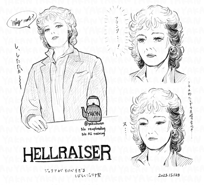 yakan☆quiet followSPOILER2025/05/23〜24映画「ヘルレイザー」のジュリアの落書きとちょっとえっちなシーン。ネタバレあり。 show all(+3 images) Tap to full screen (size:700x635).Repost is prohibited Let's send reactions! freqpopularsnackothersPayment processing Replies from the creator Follow creator you care about!☆quiet follow yakanDOODLE2025/10/09描いてる時間に描くものが影響されすぎてて笑う。あったかいものでも飲んでのんびりしたい時間帯。 yakanDOODLE2025/10/08鉄は熱いうちに打て!!!!!! yakanDOODLE2025/10/07かつてないほど描いてて鼻息があらいのマジで自分がキモい。けど、さっきまであった疲労全部吹っ飛んだ。己の妄想力に感謝。 yakanDOODLE2025/10/06肌寒くなってきましたね。 yakanDOODLE2025/10/05〜(適当更新)トルコヒッチハイクとは別の時系列の放映(脳内妄想)用勝手にシーンが頭の中で生成されていくので、私の現実逃避と脳内整理用に吐き出し口を作ります説明とかはこっち↓1廻目「アンカラスタート!!ヒッチハイクでソフィアまで!!」(更新停滞中)https://poipiku.com/11249539/11783993.html yakanDOODLE2025/10/0318↑ y/n息抜き落書き 3