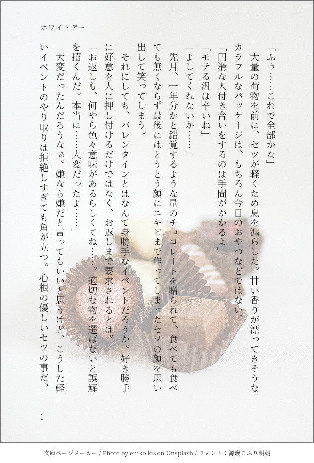ホワイトデー名無し主セツ、ED後同棲設定。