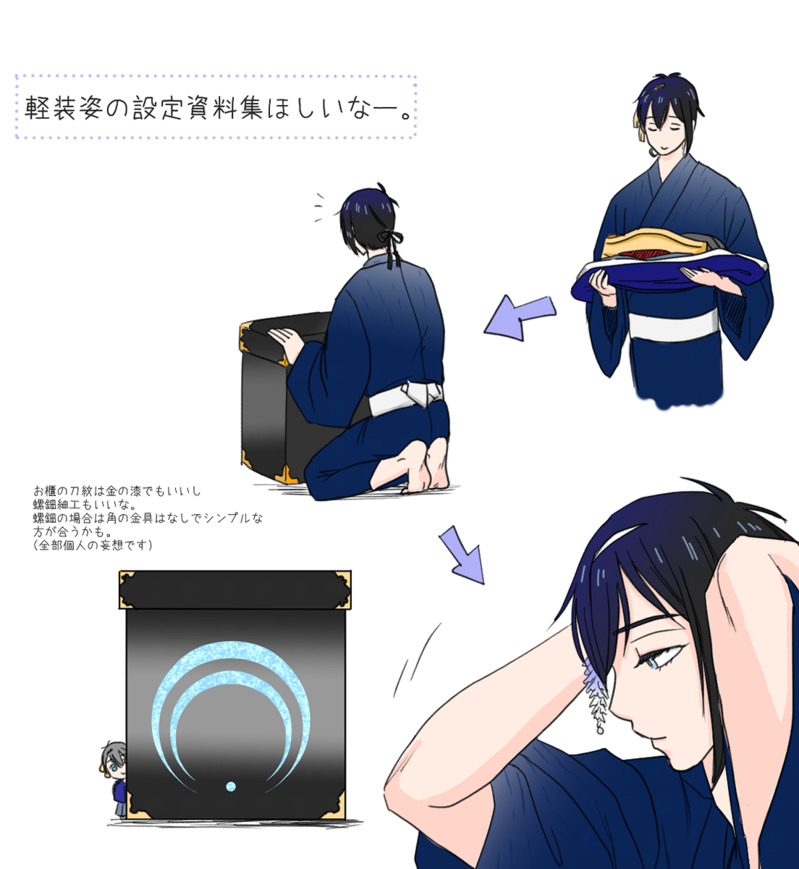 superaerial701☆quiet followDOODLEお衣装収納三日月さんバージョン。いつも誰かに脱ぎ着させてもらっているようなイメージですが、一振りでできるもん(Eーてれ風)とお着替えしてもらいました。軽装なら髪飾りも替え忘れずに! #三日月宗近 Mikazuki Munechika Tap to full screen (size:1104x1200).Repost is prohibited Let's send reactions! freqpopularsnackothersPayment processing Replies from the creator Follow creator you care about!☆quiet follow superaerial701DONEみかつるみつかる9で発表した新作マンガ「雨上がりの本丸で」です。会場で読んでくださった方ありがとうございました! 4 superaerial701DOODLEもうすっかり葉桜になってしまいました。今日も弊本丸のみかつるは平和です。 superaerial701DONE人の身を得て早10年。でもまだ10年、鋼の時にはできなかったことができるようになって手を繋ぐこととか些細なことでもいちいち感動していたらいいな。「花見にいこうか」みかつるの日おめでとうございます!! superaerial701DOODLE平静を装いつつ祝装の衝撃をくらっている鶴丸さんです。あんなの突然見せられたら腰ぬかすやろ!!!!(最大級の賛辞) superaerial701TRAININGお年賀的な🐍今年もどうぞよろしくお願いいたします superaerial701DOODLE新しいギアを手に入れたのでお試しらくがき related works sungen(さんげん)DONEつるみかワンドロ漫画まとめ本2巻のノベルティ(メガネ拭き)用の絵です。メガネ拭きって事でとにかく賑やかにしようと頑張ってみました。メガネ拭きではあまり細かい絵は出てない&色が淡い感じになりましたが、まあ、ありかなと思います。もちもちランドに初めて来たつるみかが、つるみかライドで世界一周みたいな。楽しそうで何より。 gamshara72DONE「俺たちに挑もうってのかい?」のつもりで描いてたのに思いの外優しい目になっちゃって縁側から庭ではしゃぐ短刀達を見守るじじい達になってしまった😂 Mutuko_lifeDONEみかぶぜ、というどマイナーにハマってしまったので自己生産していくしかないのです( ¨̮ )笑三日月さんは性欲魔神なイメージが強くて、豊前の瞳の色が変わっちゃうくらい愛されてたらいいなあ……っていう妄想…。 azutyaPROGRESSリアル友人用年賀状。作成中。#三日月宗近 3 FhutabaMDONE寒くなってきたので三日月殿にマフラーを贈りました。今日も嬉しそうに髪を巻き込んだまま巻いて、万事屋へ出かけていきました。次は手袋も編みますかねぇ。12月19日 小狐丸 726eisDOODLE令和におちゃめ機能 かつおDOODLE #刀剣乱舞#三日月宗近 superaerial701DOODLEお祭り衣装良いですねぇ良いですねぇ。お忍び🌙さんもこれにはニッコリ。諸事情で現地参戦できないので間違っているところ多々あると思いますがご容赦を。 FhutabaMDONE今年もよろしくお願いします!こっそりポイピクに年賀状3種置いておきます…😌💦 3 recommended works びっきーDOODLEびっきー審神者と青江の漫画 #とうらぶ #刀剣乱舞 #にっかり青江 #審神者 #漫画 #もこもこ #冬 2 Tsuitachi86DOODLE歯科健診 マナタマユムPROGRESS #刀剣乱舞 sheep_hituziDOODLE貞宗兄弟 ふじゆう5106DONE照れ顔長義くんたくさん描きました。楽しかった~! 10 紅茶殿下DONE\\\長谷部手でハート作って/// 3tubakiDONEうらしまくん🌼 いちまるDOODLE花丸無印も続も見終わったから描いた memoCAN’T MAKE肥前に呆れられるむつ。土佐藩イベで肥前と先生が来て嬉しそうなむつ可愛過ぎた。