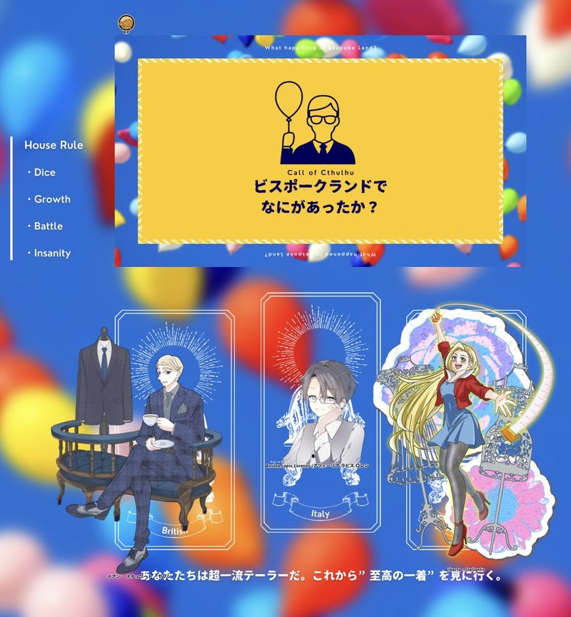 あけふじ☆こそフォロネタバレCoC6『ビスポークランドでなにがあったか?』KP:猫弥澤さんHO英:もぐりさん / イアン・ スチュワート ・セブンHO伊:佑津葵さん / Azulea.Lapis.LorenzoHO米:明藤 / Liberta・Stellantisどったんばったん、出目が終始真っ赤っか!好きな事たくさんさせてもらえて、楽しかった〜!!遊んでくれて、ありがとう! タップで全画面(原寸:1279x1382)無断転載禁止 リアクションをたくさん送って応援しよう! よく使う人気おやつその他支払処理中 作者からのリプライ 気になる人をどんどんフォローしよう!☆こそフォロ あけふじネタバレCoC6『ビスポークランドでなにがあったか?』KP:猫弥澤さんHO英:もぐりさん / イアン・ スチュワート ・セブンHO伊:佑津葵さん / Azulea.Lapis.LorenzoHO米:明藤 / Liberta・Stellantisどったんばったん、出目が終始真っ赤っか!好きな事たくさんさせてもらえて、楽しかった〜!!遊んでくれて、ありがとう! あけふじネタバレcoc6 禍福街KP:さくさんPL:もぐりさん/ジュヘナ 明藤/零綺(はなちゃん)シナリオクリア!𝑩𝑰𝑮 𝑳𝑶𝑽𝑬______愛の物語でした…… あけふじネタバレDesire to dominate.KP:もぐりさんKPC:九条環PL:明藤PC:正宗利王久ひやひやしましたが、シナリオくりあ本当情けない上司でごめん 2 あけふじネタバレCoC6th→7th(改変)【博奕は色より三分濃い】KP/KPCもぐりさん/素戔嗚 武蔵PC/PL明藤/珱牙 羅卯scenario clear!シナリオとは全く関係ないのですが、武蔵くんが可愛かったです。たくさんダイス振って楽しかったね!また遊びましょ! あけふじネタバレイザナミの棺KP:あんちゃん(息吹)さんHO1:素戔嗚 武蔵もぐりさんHO2:珱牙 羅卯明藤両生還でシナリオクリア!100fを5回出しました!が、相方も同じ数出してました!仲良しだね!俺たちどこまで行っても、平行線だけどバディだからな!愛してるよ!あんちゃんさん、もぐりさん長い時間ありがとうございました!楽しかったぁ! あけふじネタバレCoC 6th夢と現の終着駅PC:Mishal Chantage / うなぎさんKPC:皇 風流=Margarethe Weiss / 明藤シナリオ外で突然泣かされました……あの、その、おあいこって事でいいですかね?いいですよね?久しぶり(キキキラ以来)のうなぎさんで楽しかったです!ありがとうございました! おすすめ作品 海ノ藻過去のを晒すむいみつまとめ 18 410Gone0供養投稿テスト7月頭くらいに描いて放置してた🦌を掘り返したので載せちゃう 前列腺盐らくがき Le34_yできた性癖パネルトラップ!リプありがとうございました✨普段描かない子とかも描けて楽しかった〜 co_yotaできた髭バソ課題の。ただいちゃついてるだけの髭バソになってしまった マイクラ大好きできたうちの子の、ロストマーダーことロズィちゃんです!少し前に書いたものを、まだあげていなかったので投下! 元小説はこちら↓https://tanpen.net/novel/f19a6346-d46a-44ac-91c2-319bafed1be7/ 第二話も執筆中。ぜひ見てみてくださいね! スカルマンらくがきMagnet Man in a corner 871neconogohanらくがき色々。最後はデュガの顔と他のやつ微調整した差分 6 Oshiikiteyoooお知らせ🏃CoC『チャイルド・チェイス』💨(作:戯曲茶屋 様)KP:彩硝子さん/樺島彰吾PL:くない/ヒイト▷▶▷ぽか植継続▷▶▷2025/04/20 シナリオクリア 2