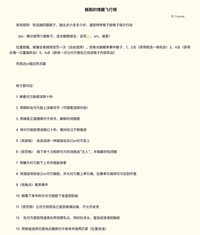 locust☆quiet followDONE蜥勘的情趣飞行棋密码是“yes”恶趣味产物,附带棋盘 #蜥勘 #第五人格 fifthPersonality #孽蜥(identityv) #勘探员 show all(+3 images) Tap to full screen (size:2042x2391).Repost is prohibited Let's send reactions! freqpopularsnackothersPayment processing Replies from the creator Follow creator you care about!☆quiet follow locustDONE蜥勘的情趣飞行棋密码是“yes”恶趣味产物,附带棋盘 4 related works 火勢漫研DOODLE【翻訳しましたTranslated】打排專治體虛系列1 7 locustDONE蜥勘的情趣飞行棋密码是“yes”恶趣味产物,附带棋盘 4