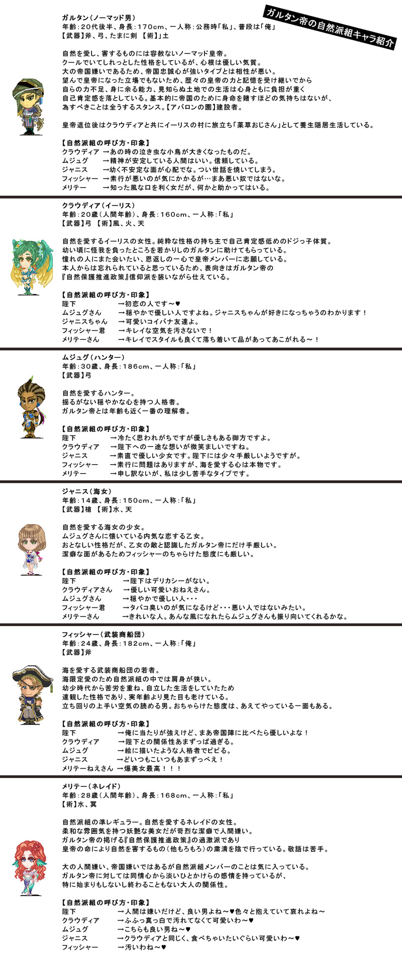 johnroma2n☆quiet followPAST弊帝国のキャラクター設定一覧 #設定 setup show all(+2 images) Tap to full screen (size:900x2155).Repost is prohibited Let's send reactions! freqpopularsnackothersPayment processing Replies from the creator Follow creator you care about!☆quiet follow johnroma2nPAST弊帝国のキャラクター設定一覧 3 johnroma2nPROGRESS正装ドレスクラウディアの描き込み過程オマケは毛皮なしガルタン陛下のやつ 3 johnroma2nDONE🐴陛下と🍃ちゃんダンス不得手な🐴陛下が🍃ちゃんをの足を踏みそうになったところを🍃ちゃんがふわっ跳ねて、そのままキャッキャしながら踊っているイメージ。3枚目はツヤいれ前のもの。 3 johnroma2nPROGRESS舞踏会正装🐴🍃の進捗 johnroma2nPAST🐴ノマド皇帝ガルタン陛下の設定画皇帝らしくするために豪華アレンジしています。 2 johnroma2nPAST🐴🍃イーリスの村 2 related works チェラテDOODLE残り2骨いますがそっちは能力は比較的別なのでそのままスケルトンというモンスターでいきたいと思います。リモッカくんです。これで一次創作と言い張れます。多分。 3 チェラテDONE大幅に変わったというか衣装変えたに等しいです2019/03/09 23:34:02すごく手間かかりました(:3 」 ∠) チェラテDOODLE2019/01/17 19:26:271匹にゃんこを増やしましたスコティッシュフォールドが犬に見えるのなんの… 4 チェラテDOODLE二ソートくんの形を変えたので多分これで一次創作と言い張れます 4 糸吉糸PAST教会周り 5 ななめPASTアキラとマサ設定(社会人編/同居編)。テンプレお借りしています。最後の間取りは同居中の部屋。自分用備忘録。忘れそうなのでメモ。マサの母親の旧姓は河野なので、マサの名字は田中→河野→東海林と変わっています。だんだん壮大になっている(*^▽^*) 11 ななめPASTアキラとマサ設定(大学生編)。サイトを閉鎖したのでこちらに移しています。自分用備忘録。 15 糸吉糸DOODLE自創作に於ける魔法・魔術・魔力について チェラテDOODLEあまりにも描けないのでなう(2019/03/11 20:00:20) recommended works チェラテDOODLE恋するキャラがいて引き立ちますよね( ・́∀・̀)ヘヘヘ女性の身体うまくかけないので服は書き直す可能性あります( ˙꒳˙ ) チェラテDOODLE二ソートくんの形を変えたので多分これで一次創作と言い張れます 4 前川なごみDONE創作男女カプ。航ひま。 2 チェラテDONEアルテッソくんの全身図。少し服の柄と靴を、変更しました。2019/03/01 19:11:28 糸吉糸PAST過去に考えた設定をとりあえずまとめたので統一されてない! 設定勉強中です。 26 糸吉糸PAST火丁さんまとめ入れ忘れた 4 糸吉糸DOODLE中学時代の推し自キャラ。業の深い兄弟(双子)を作りがち。(2枚目は過去絵) 2 ノヽシ关リPASTツキシマ(2015) 糸吉糸PAST2017年の落書き帳に残っていた落書き群(あくまで創作です) 11