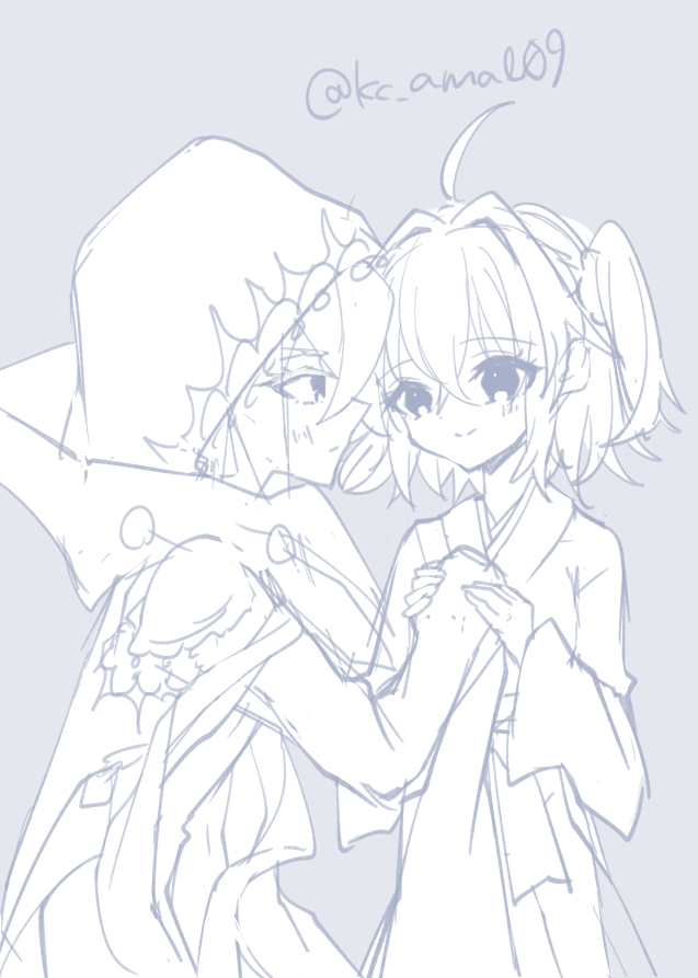 ピオぐだ♀。とりあえずこんな感じで進めてみてます、あんまお祝いっぽくないので別のになるかもだけど!