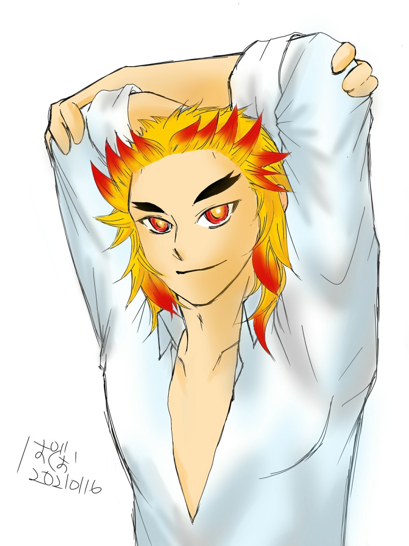 初めて煉獄さん描いた。むずい