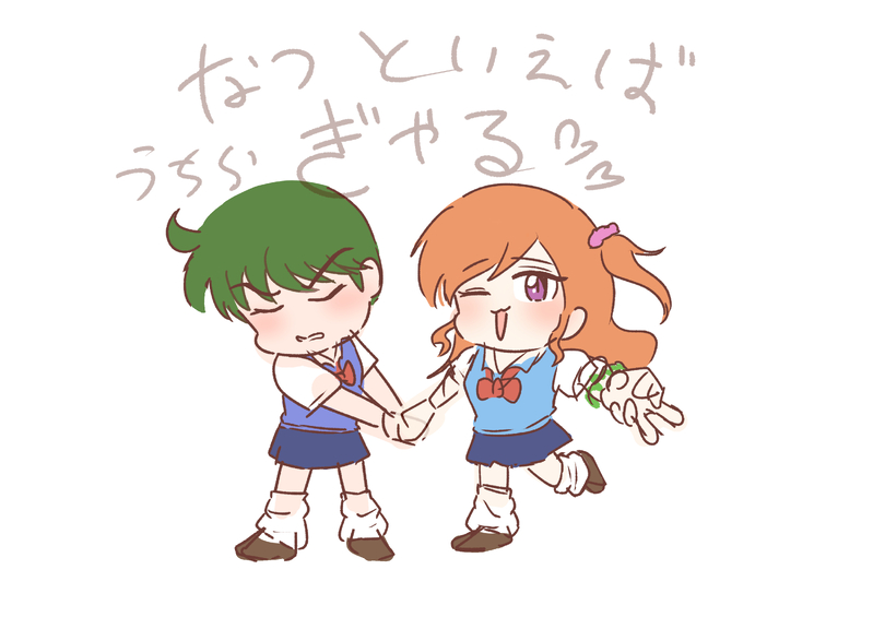 夏といえばうちらぎゃる!って感じの描きかけ。ついったぁで百合の漫画流れてきてほえ〜なってんその話は置いといて、かみかわくんが謎に付き合わされてたら可愛い、手繋ぐのが恥ずかしくて握手になってほしさ。8はあんまわからなんだが二人ともアンドロイドなんだよに〜みたいな。いつもしょたガキか男の乳ばっか描いてるからカプも描くんだぞという強い意気込み。
