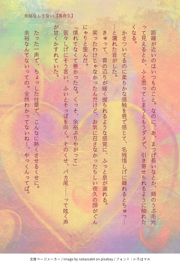 msk11170808☆quiet followPASTキスの日ってことで、キスしてる黒夜久のお話まとめました #黒夜久 show all(+16 images) Tap to full screen (size:630x928).Repost is prohibited Let's send reactions! freqpopularsnackothersPayment processing Replies from the creator Follow creator you care about!☆quiet follow msk11170808DONE 17312 msk11170808DOODLE一日遅れですみません。とりあえず終わりまで書いたので送ります。条件色々あったので、抜け落ちてるかも……チェックよろしくお願いします。 19646 msk11170808DONE2024.10.27 当スペースまで足を運んでいただきありがとうございました!新刊「つながる つなげる つづいてく」の中にある「ファンサは人を殺すらしい」と少しつながっているお話です。 7740 msk11170808DONE夜久さんのお誕生日のお話の続きです。これでもまだ完結ではなく、黒尾くんの誕生日に続きます。 8049 msk11170808DONE0721の日というのを聞いたのでお祭りに乗りたかったけどまったく間に合わなかった0721の日のお話y or n 3053 msk11170808DONEワードパレット「ネコヤナギ」をお借りして書いた話のやっくん視点。ふと見てしまった黒尾くんの表情に驚いててれるやっくんの話。ゆえに、その後黒尾くんへの対応が甘くなったんだと思われる。そんな顔見せられたら、仕事頑張ってる恋人にアイスコーヒーくらい奢ってあげたくなるし、キスもハグもしたくなるってもんだよね〜。 3274 related works hiyoDONE酔っ払い黒尾さんと夜久さんガチャ 2 黒倉 しろDONEクリスマスの夜の黒夜久ちゃん(年齢操作捏造あり) 2 hiyoDONE「そんな顔されたら我慢できなくなるだろ」 るぅ🐰MAIKING🔞夜久さんをぐずぐずのどろどろにしたい黒尾の話。黒夜久。大人軸。がっつり🔞なのでお気を付けください。パスワード:黒夜久の背番号 1197 黒倉 しろMOURNING年明けからの黒夜久ちゃんまとめ 9 hiyoDONE夜久さん出発の日に、黒尾さんがようやく覚悟を決める話✈️プロの仕組みがわかってないのでヤクサンの出国タイミングいつなのかもわからないんですけど、趣味で大人軸にしてます。 5034 272DOODLE※獣人パロ※黒夜久※ちょっと続いたもりすけ獣人化🐈⚠︎🔞⚠︎リスト限定↓ポストにいいね、またはリプライでリスインしますhttps://x.com/fn9689/status/1786646972075835876?s=46&t=DwGLWebOfJb-Gv8veZlu8w 3 黒倉 しろDONEバレンタインネタ黒夜久ちゃん 4 めこ*咩子DOODLE黒夜久18+18↑「yes」 3 recommended works 黒倉 しろPASTわりと最近の#腐向けHQ #黒夜久 8 黒倉 しろPAST短いの#腐向けHQ #黒夜久 4 黒倉 しろPAST9689 MATOETA vol.2 5 黒倉 しろPAST2行で心を奪い取る(かもしれない)黒夜久ちゃんとMATOE vol.3 7 黒倉 しろPAST黒夜久ひとつまとめ漏らしてた… 2 td0kmPAST二〇二一年八月二十二日 発行 無配黒夜久同棲本(合同誌)へ続く。※夜久弟妄想 1992 hiyoDONE一度お別れする黒夜久の2023〜2024年⚠️ハイキューマガジンのネタバレ含みます捏造とわたしの解釈てんこ盛りです早く日本でも結婚したい人同士が誰でも結婚できる社会になってほしいです💐🏳️🌈 23301 めこ*咩子DONE黒夜久彼らの視線のこと 731 AKI.DONE恋人のイイトコを知ってる黒尾