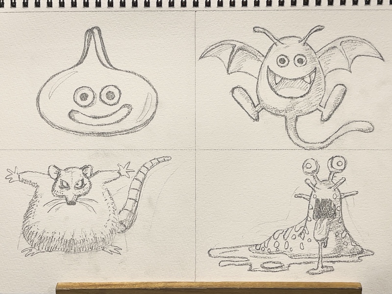消しゴム使わずに1時間で4体描いてみたけど、あれ…ドラキー…意外と上出来かも⁉︎(いつもアンバランスになるから、少し嬉しい!)