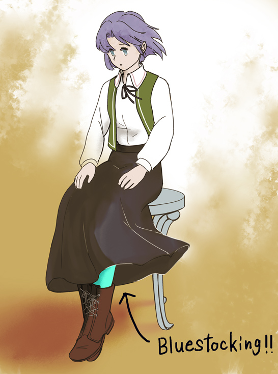 2022年頃、海外の有志の方がまもも英語版の翻訳パッチを当てた(PLAYISMの英語版まももの翻訳はあまりよろしくないのでいくつかの修正を加味した)ものを配布されていたのでDLしたのですが、その中で特にセンスいいなあって思ったのが、"Bookworm girl"を"Bluestocking"に変更してた箇所なんですよね(インテリ女性的な意味らしい)。ナナさんに青いストッキング似合いそうだしイイネ‼