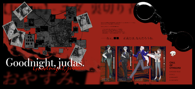 与太話☆quiet followMEMOCoC6th『Good night,Judas.』 作:酒茶漬け 様(敬称略)KP:偽りの概念HO1:日辻 茜/甘味HO2:後川 忍/柳瀬HO3:宇佐 晴颯/与太HO4:有住 向/みちのひよ▷END-1 1生還3ロスト2025/8/4シナリオURL:https://booth.pm/ja/items/2669653 ##新規 ##PL ##4PL ##HO3 ##2025年 Tap to full screen (size:4500x2061).Repost is prohibited Let's send reactions! freqpopularsnackothersPayment processing Replies from the creator Follow creator you care about!☆quiet follow 与太話MEMOCoC6th『対戦祭祀』 作:久世久香 様(敬称略)KPC:サミュエル・ベネット/与太PC:ラモラック・キッシンジャー/リコピン▷シナリオクリア2025/10/12▷GODARCA現代コンバートシナリオURL:https://booth.pm/ja/items/5480867 与太話MEMOCoC6th『ぼくはなにもしらない~この事件の犯人はHO2~』 作:まつげ屋 様(敬称略)KP:みちのひよ死体めっちゃ好き:蒼冥(ハデス)/メルクルディうっかり殺人:カツトシ/イチ警察官(多分苦労人):まぜまぜやま/与太一番普通の人:ジョン/甘味▷END-B 全生還2025/10/5シナリオURL:https://booth.pm/ja/items/1940187 与太話MEMOCoC6th『どりぃ~むらんどへようこそ』 作:フィッシュSAMURAI 様(敬称略)KPC:東雲 華音/きりあPC:晴近 直青/あゆむもち 入相 小夜/与太 薄明 紺/すやまる▷全生還2025/8/30▷誰がロックを殺すのか継続シナリオURL:https://booth.pm/ja/items/6917150 与太話MEMOCoC6th『夏に逃げ水』 作:さき 様(敬称略)KPC:四月朔日 千歳/甘味PC:八月朔日 櫂/与太 ▷両生還2025/8/7▷実験体δは青に微笑む継続シナリオURL:https://booth.pm/ja/items/2198925 与太話MEMOCoC6th『Good night,Judas.』 作:酒茶漬け 様(敬称略)KP:偽りの概念HO1:日辻 茜/甘味HO2:後川 忍/柳瀬HO3:宇佐 晴颯/与太HO4:有住 向/みちのひよ▷END-1 1生還3ロスト2025/8/4シナリオURL:https://booth.pm/ja/items/2669653 与太話MEMOCoC6th『トランクに死体、バスタブに人魚』 作:摂氏5100℃ 様(敬称略)KPC:瀬那 岬/ゴリゴリ塩PC:佐伯 彰/与太▷生還2025/7/20シナリオURL:https://amane53.booth.pm/items/2810318 recommended works あじ塩MOURNING克烈、というか克←烈多め 9 莉子/りしDOODLE多分着替えなさそうだけど、二次創作だからいいじゃない‼️やたら着なれてる感あって105ちゃんドキドキすればいいと思う(無自覚)23/07/28 MoynaDOODLE あらかわDOODLEしずらぎ🔞このふたりが一番セックス激しそうpass:18↑? yes/no 2 As9asIDOODLE 5294 popopochidayoDOODLE最近描いたものそらあれよ練習と🐍さん兄弟とさよならのとき 3 眠兎︎DONEトレスしました yukiamano77SPOILERNapFrappe / AreAy 現未× ド・ラフ まつかぜDOODLE「狐やこんこん双子やこんこん」「夜道は続くよどこまでも」完売有難うございました😊お気に入りページ🦊🦊治侑は好きですか?