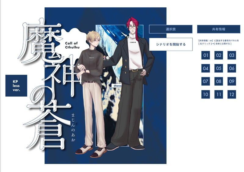 与太話☆quiet followMEMOCoC6th『魔神の蒼』 作:Alpha 様(敬称略)PC:八木 草干/みちのひよPC:八月朔日 櫂/与太 ▷両生還2026/1/4▷実験体δは青に微笑む継続シナリオURL:https://booth.pm/ja/items/6044783 ##2026年 ##継続 ##KPレス ##2PL Tap to full screen (size:6996x4935).Repost is prohibited Let's send reactions! freqpopularsnackothersPayment processing Replies from the creator Follow creator you care about!☆quiet follow 与太話MEMOCoC6th『魔神の蒼』 作:Alpha 様(敬称略)PC:八木 草干/みちのひよPC:八月朔日 櫂/与太 ▷両生還2026/1/4▷実験体δは青に微笑む継続シナリオURL:https://booth.pm/ja/items/6044783 与太話MEMOCoC6th『ゆめみすいぞくかん』 作:常眠 宴 様PC:八月朔日 櫂/与太▷生還2026/1/3▷実験体δは青に微笑む継続シナリオURL:https://booth.pm/ja/items/3640430 与太話MEMOCoC6th『ワンルーム・ディスコン』 作:ねこずし卓 様(敬称略)KP:甘味HO1:眠室 うたた/重陽HO2:火籬 燧/ゴリゴリ塩HO3:無相 撞真 /与太HO4:覆水 曐影/すやまる▷END-2 全生還2025/11/18▷狂學-西編-継続シナリオURL:https://booth.pm/ja/items/2400328 与太話MEMOCoC6th『狂気山脈 ~邪神の山嶺~』 作:まだら牛 様(敬称略)KP:瀬川玖兎HO1A孤高の人:小山田 健次郎/かいわれHO2B最後の生き残り:ノーバート・ベルク/与太HO3A伝説の見届け人:山上 導/すやまるHO4A並び立つ双耳峰:デービー・ホーガン/リコピン▷全生還2025/11/13シナリオURL:https://booth.pm/ja/items/1071516 与太話MEMOCoC6th『しんでなんかないよ』 作:ゆめたろう 様(敬称略)KPC:ロータス/きりあPC:ゲルトゥーブ/与太▷END-1 両生還2025/11/1▷レプリカントの葬列継続シナリオURL:https://yumetarou-tomato.booth.pm/items/5422891 与太話MEMOCoC6th『LQ記憶の処方箋』 作:ブランツ 様(敬称略)PC:ゲルトゥーブ/与太▷END-A 生還2025/11/1シナリオURL:https://booth.pm/ja/items/5714610 recommended works hi_hisahisaDONE翌朝の2人❤️何も出てないけど一応… 3 shatiku_bDOODLEもはや大好きバニー(ミミックコンビ、アラン兄さん) 2 kyo_ahoDONEいいおっぱいの日。 ︎︎🌙MAIKINGテスト投稿なり。これはいつか完成させるミ! Aku3015DOODLE18⬆️? kyl217gDOODLE315 kurisutarusabuDOODLE四季送りげんみ❌自陣イメージのカクテル※五百式カクテルメーカー使用 4 くま🐻MENU☕️❤️🔑はございません。誰でも閲覧可 17 Midknite_AngelDONEKaeLuc Valentine's Exchange gift.Prompt: Hybrid!AU with wolf Kaeya and bunny Diluc NSFW