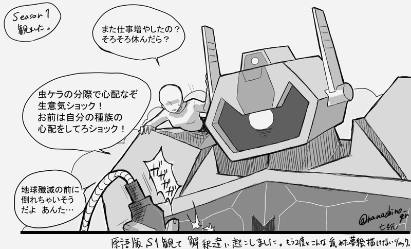 サイババ衝撃波さん。人間夢主注意。邦語版S1のみ視聴して描いてその後解釈違い起こした。供養。2期以降早めに観たい→観ました。意外と解釈違いでない気がする…?