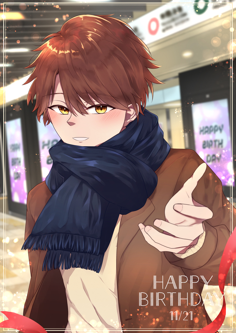 1枚目 お誕生日おめでとうイラストです!駅でヒロインちゃんと待ち合わせのイメージです✨