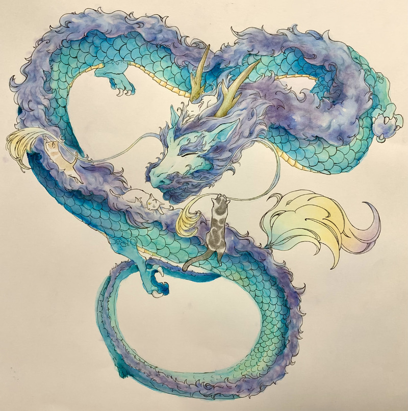 年賀状の龍とうちの猫たち