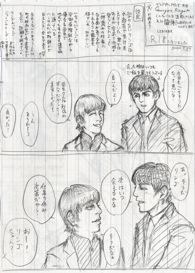 ganzenokouhai☆quiet followMOURNINGハリスタ二次創作『水商売リンゴ』その1。高校生ジョージ×水商売リンゴのBL漫画です。なんでも許せる方向け。 #starrison #ハリスタ #BL #エコノミーズ #Beatles show all(+7 images) Tap to full screen (size:2958x4146).Repost is prohibited Let's send reactions! freqpopularsnackothersPayment processing Replies from the creator Follow creator you care about!☆quiet follow ganzenokouhaiMOURNINGハリスタ二次創作『Get Back, Ringo』その3。25歳社会人ジョージ×28歳リンゴ(彼氏有)のBL漫画です。今回は過去編。年齢はゲットバックセッションの頃ですが、物語の時代は現代というご都合主義。 8 ganzenokouhaiMOURNINGハリスタ二次創作『Get Back, Ringo』その2。25歳社会人ジョージ×28歳リンゴ(彼氏有)のBL漫画です。年齢はゲットバックセッションの頃ですが、物語の時代は現代というご都合主義。 8 ganzenokouhaiMOURNINGハリスタ二次創作『Get Back, Ringo』その1。25歳社会人ジョージ×28歳リンゴ(彼氏有)のBL漫画です。年齢はゲットバックセッションの頃ですが、物語の時代は現代というご都合主義。 8 ganzenokouhaiMOURNINGハリスタ二次創作『水商売リンゴ』その7(これで最後)。高校生ジョージ×水商売リンゴのBL漫画です。なんでも許せる方向け。性的な描写あり。 6 ganzenokouhaiMOURNINGハリスタ二次創作『水商売リンゴ』その6。高校生ジョージ×水商売リンゴのBL漫画です。なんでも許せる方向け。性的な描写あり。 8 ganzenokouhaiMOURNINGハリスタ二次創作『水商売リンゴ』その5。高校生ジョージ×水商売リンゴのBL漫画です。なんでも許せる方向け。 8 related works ganzenokouhaiMOURNINGハリスタ二次創作『水商売リンゴ』その3。高校生ジョージ×水商売リンゴのBL漫画です。なんでも許せる方向け。少し性的な描写あり。 8 ganzenokouhaiMOURNINGハリスタ二次創作『水商売リンゴ』その7(これで最後)。高校生ジョージ×水商売リンゴのBL漫画です。なんでも許せる方向け。性的な描写あり。 6 わっつ・ちゃーりーDOODLE日に日に近づいてきた来日公演🎵#ポール・マッカートニー #Poul McCartney #Beatles#アナログ #コピック ganzenokouhaiMOURNINGハリスタ二次創作『水商売リンゴ』その4。高校生ジョージ×水商売リンゴのBL漫画です。なんでも許せる方向け。少し性的な描写あり。 8 わっつ・ちゃーりーDONEジョージ・ハリスン♪最近描いた中では1番のお気に入り♪ ganzenokouhaiMOURNINGハリスタ二次創作『Get Back, Ringo』その1。25歳社会人ジョージ×28歳リンゴ(彼氏有)のBL漫画です。年齢はゲットバックセッションの頃ですが、物語の時代は現代というご都合主義。 8 ganzenokouhaiMOURNINGハリスタ二次創作『水商売リンゴ』その6。高校生ジョージ×水商売リンゴのBL漫画です。なんでも許せる方向け。性的な描写あり。 8 わっつ・ちゃーりーDOODLEハッピーバースディ🎵ジョージ🎉貴方もビートルズも永遠不滅☀️ れ こPROGRESS待ってくれ なんでフォントが 骨なんだ(2枚目) 4