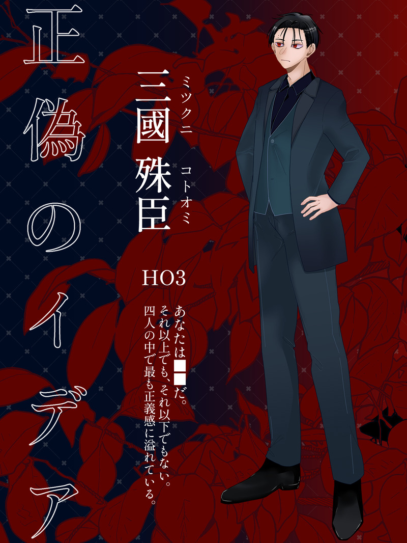 うさぎさん☆quiet followDONE三國殊臣(ミツクニ コトオミ) ##立ち絵 show all(+4 images) Tap to full screen (size:1500x2000).Repost is prohibited Let's send reactions! freqpopularsnackothersPayment processing Replies from the creator Follow creator you care about!☆quiet follow うさぎさんDONE四季送り 🌸HO春🌸⚠️3枚目以降、HOネタバレありのため閲覧注意!大金星 富(だいきんぼし とみ~)やかましい女児。立てば害悪、座れば負債、歩く姿は大戦犯のコンボを決める愚か。今日もお皿を何枚割ったのでしょうか。見た目のモチーフはでっかい赤ちゃんです。 4 うさぎさんDONE🐇🐇で美味しいものを食べに行こう!!!お岩ちゃんは若干中華みの服装です。ごちそうさまでした!! 3 うさぎさんDONE虚校の餞地図と神話生物くんのまとめです。パスワードは卓中に出てきたとんでもワード「NPCは◯◯◯」です。 28 うさぎさんDONE和傘を日傘にしているお岩ちゃん。和傘のくせに今回は唐傘小僧のコスプレ。傘の内側にひらひらがついているけど、唐傘小僧の舌とか、ボロくて破けた紙のイメージでつけている。風がふけば見た目は涼しげ。顔も隠せて一石二鳥。海に入るつもりは全くないけど、孫が海の深い所に行くのが不安で、インナーに見せかけたウェットスーツを着ている。いつもより肌に密着していてなんか不思議……入れ墨はまあ誤魔化せるでしょ! 3 うさぎさんDONE曽根春風、別名(本名?)カトさんです。いよいよ立ち絵が増えたため個別でまとめる運びになりました。やったぞ~~!!実は君ってカーキよりも正装となると白が似合う男なんだね……https://poipiku.com/114958/5017925.html 5 うさぎさんDONE⚠️ 虚校の餞・現行未通過× & ネタバレ注意トレードトレードトルネードにて使用した並行世界の四十住つゆり。こちらのほうが少し無邪気で無知。相変わらず生きているだけで楽しそう。 6