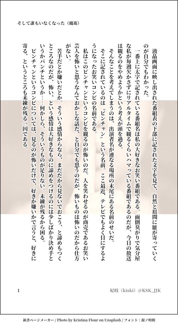 kisaki220 主に画像小説。BL、男女CP混在注意本アカ(鍵)→@kisaki220 作品投稿アカ→@prps_lovelove 呪アカ→@KSK_JJK ☆quiet follow Yell with Emoji POIPOI 88