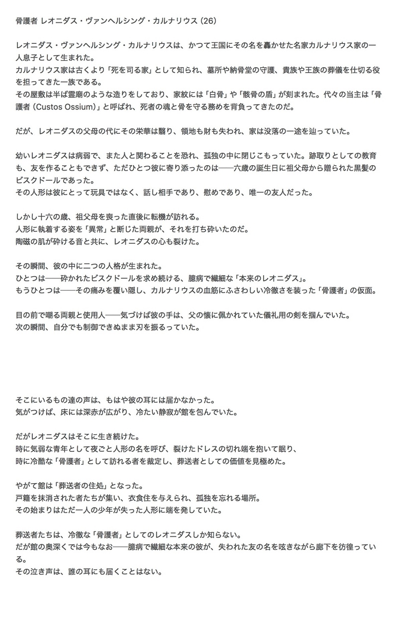 𝖟𝖆𝖐𝖚𝖗𝖔☆quiet followMEMOレオニダス・ヴァンヘルシング・カルナリウス 過去 Tap to full screen (size:1190x1878).Repost is prohibited Let's send reactions! freqpopularsnackothersPayment processing Replies from the creator Follow creator you care about!☆quiet follow 𝖟𝖆𝖐𝖚𝖗𝖔MEMOダヴィデ・ハムレット・エヴァンジルソル 過去 𝖟𝖆𝖐𝖚𝖗𝖔MEMOマクベス・ブロンシェント 過去 𝖟𝖆𝖐𝖚𝖗𝖔MEMOAtriumInterVitaeEtMortis_oc 11 𝖟𝖆𝖐𝖚𝖗𝖔MEMOドルヴィエン・ゴートガスト 過去 𝖟𝖆𝖐𝖚𝖗𝖔MEMOヴィットリオの名前 560 𝖟𝖆𝖐𝖚𝖗𝖔MEMOレオニダス・ヴァンヘルシング・カルナリウス 過去 recommended works 小SylvieDOODLE火焰戎装番外 7 yu_crescentmoonDOODLE推し作家さんの小説より、議論に疲れ切って暴走気味の🐻さんを無理やり黙らせて休ませる伊さんの描写が好きすぎてらくがきしました…伊🐻に理解がありますか? y/n komai_pkDONEおかず提供監禁・小のミ18↑? 2 りんなMENUコミックマーケット105に参加します。参加日:12月30日(月)時間:10:30~16:00場所:東京ビッグサイト私のスペースナンバーは、西1ホール ま37a「ごちゃまぜたまご」です。新刊は、純喫茶メニュー擬人化本「純喫茶メニュー」です。※既刊「irodori」は、残り3部しかありません。再販の予定もありません。お求めの方はお早めにお願いいたします。 yasakaiori_TRPGMOURNINGカサネノモリ げんみ×こういうのあった方が楽しくなるかな〜〜〜〜と思ってちまちまちまちまちまちまちまちま準備したやつ 私がダイヘとJアの一番のファン……ってワケ🤚 20 chiya1918DONE冬のうれても、間に合いましたのでもう1作。真ん中🎂で書いた現代👹サツのお話を加筆しました。加筆した部分はほとんどR18大人のお姉様向けですのでお気をつけください。パス変更しました。いつもの18歳↑?で。 6163 isin_TRPGMEMO もりおDOODLE❤️💚+きりゅ人誑しの龍 お𓌉◯𓇋DONECOC【GODARCA】げんみ❌ 自陣⭕️戦車の差分諸々 23