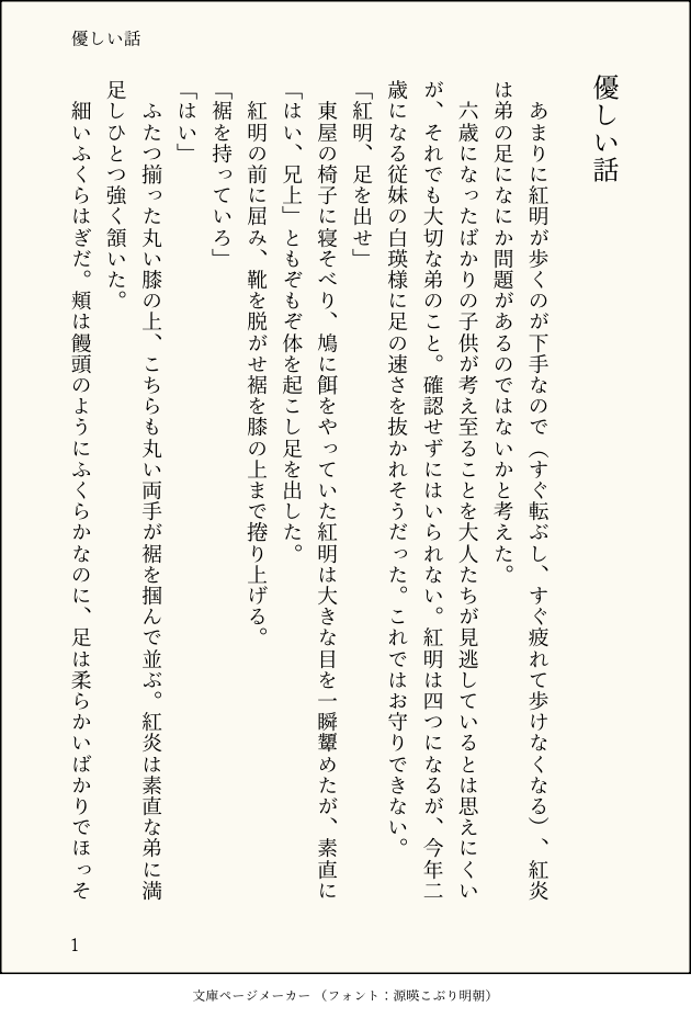 木目☆quiet followDONE紅炎×紅明で2人が小さい頃の話です。紅炎にも可愛らしい子供時代があったんじゃないか、紅明はそういうのあんまりなかったんじゃないかな〜と思いながら書きました。いつになく紅炎ががんばっています。可愛い話なのに、最後の1行で台無しに… show all(+6 images) Tap to full screen (size:630x928).Repost is prohibited Let's send reactions! freqpopularsnackothersPayment processing Replies from the creator Follow creator you care about!☆quiet follow 木目DOODLE王宮開催おめでとうございます!!こういうシンジャが大好きなんです!!物凄くくだらないことしてるだけだけど、そういうのが好きです。シンジャ好き!! 4 木目DONE紅炎×紅明で2人が小さい頃の話です。紅炎にも可愛らしい子供時代があったんじゃないか、紅明はそういうのあんまりなかったんじゃないかな〜と思いながら書きました。いつになく紅炎ががんばっています。可愛い話なのに、最後の1行で台無しに… 7 木目MOURNING沙門島に流されてばかりの頃の紅炎と紅明の話。紅明のお腹の傷って誰が治したんだろう?なんとなく紅炎だと思って書き始めたけど、よくよく考えれば距離があり過ぎるし、すぐに捕まってるよな…と考え始めたらどうすることもできなかったので供養します。 1565 木目MOURNING書きかけで放置してたっぽいシンジャ多分、行為の部分を後から書こうとして放置してたっぽい。特にしてないけど、一応配慮…中途半端で始まってもいないし終わってもいない本当にらくがき 4 木目DOODLE忠雲から見た紅明の短い話です。生理的に少々嫌悪感がわくような食べ方のシーンがあります。お気をつけ下さい。忠雲の眷属器を弓矢設定に捏造しております。ただ紅明が月餅食べてるだけの話の予定が、いつの間に忠雲の話になってました。 1846 木目DOODLEシンジャで、死ネタ、夢オチ、微グロ描写ありです。お気をつけ下さい。厨二病全開です。 6 recommended works indK9PAST亮懿补档③接上,坑了的本图 5 ezynartDOODLEI don't have anything to say...midnight doodles..Are you 18+? 🔞 2 o(dnt)DOODLETCOxTDL akai_renDONE #ロドスの推し事年末年始オペレーター:コールドショット、ポンシラスコールドショットは「ヘレナ」表記になっています。 2002 evanthial696PROGRESS2017.09.21 上傳 4020 あのひょけDOODLE太兄ハイライト無し差分マフィアみが増す tounyuu_mentaruDOODLE・服の裾咥えてたけどイって力抜けたモモ・ショタ百瀬18↑? yes/no 2 ichigomaru1155SPOILER幽明境を異にせずにて使用したスチル maoの幻覚置き場PROGRESS※zr家マンガ進捗注意⚠️お子いるから苦手な方は⚠️マンガどころかもはや全身すら描けない劣化画力。俯瞰で描きたかったのに諦めた😂あの字に紳士の嗜みチェスターコート着せたいだけの欲望