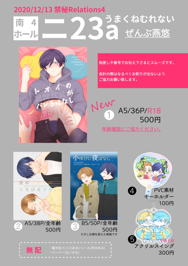 即席麺☆quiet followMEMO暫定お品書き🦪今後欠席の判断をする可能性もあるので、その辺も含めて内容まとめたら支部の方にも載せます。 Tap to full screen (size:1488x2105).Repost is prohibited Let's send reactions! freqpopularsnackothersPayment processing Replies from the creator Follow creator you care about!☆quiet follow 即席麺CAN’T MAKE汗だくいちゃいちゃしてくれ燕悠 即席麺CAN’T MAKE暑すぎらくがき 2 即席麺CAN’T MAKE久々に色塗りしたけどかけねえ 即席麺CAN’T MAKEリハビリらくがき🍨 2 即席麺CAN’T MAKEダ飯 即席麺CAN’T MAKE久々に14歳を描こうとしたけどかけねえ recommended works 即席麺CAN’T MAKEグッズ作れる人間になれたら燕悠グッズ作りたいのになっていうアレです。(アレです) 即席麺CAN’T MAKEツイッターの方のアイコンにした悠くん 即席麺CAN’T MAKE上手く描けないんだけど、燕悠のとーいくんにはえんたの前でふとした時にいつもよりちょっと優しい顔してほしいんだ…。 即席麺CAN’T MAKE「授業中にそういう(好きとか言う)のやめろよ。」って言うとーいと、「(呼び合うタグなんだから)たまにはお前からも言えよ」って言うえんたでアン●ャッシュして欲しいです…。 即席麺MAIKINGえんたのはずなんだけど眼鏡描かないともう誰だかわからないなこれ・・・ 即席麺CAN’T MAKE元気ないのでふにゃふにゃお絵描きしかできない 即席麺PROGRESS暫定。一旦置く… 即席麺CAN’T MAKE漫画っぽいのを書き出してしまったけどこれ終わったらちゃんと原稿のこと考えます(宣言) 即席麺PROGRESSちょっと楽しかったコマ原寸トリミングなのでかなりデカいね 2