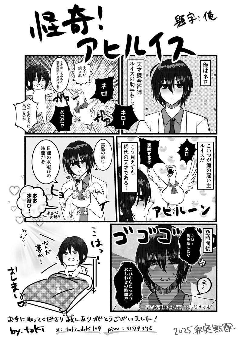 toki☆quiet followDONE2025年10月12日開催のJ.GARDEN58で頒布させていただきました無配ペーパーです。お手に取ってくださった皆様に心より感謝申し上げます!また、こちらに登場するキャラクターがメインの同人誌をBOOTHにて販売中です。https://tokidokidining.booth.pm/ #創作BL Original Bl #BL #オリジナル original #無配再録 #創作BL漫画 creativeBlManga #漫画 manga #コメディ comedy #J庭58 #J.GARDEN58 #無配 withoutDividend Tap to full screen (size:3638x5102).Repost is prohibited Let's send reactions! freqpopularsnackothersPayment processing Replies from the creator Follow creator you care about!☆quiet follow tokiDOODLE5分で描いたネロ tokiDOODLEルイス落書き tokiDOODLEiPad練習 tokiDONE2025年10月12日開催のJ.GARDEN58で頒布させていただきました無配ペーパーです。お手に取ってくださった皆様に心より感謝申し上げます!また、こちらに登場するキャラクターがメインの同人誌をBOOTHにて販売中です。https://tokidokidining.booth.pm/ tokiDOODLEラフめに着崩してる時のアル tokiPASTJ庭57で配布していた無配漫画です。半年以上前に描いたもので絵が…ですが、上げるのを忘れてたので今更ながら😅こちらのキャラを元にした小説本の通販やってます↓https://tokidokidining.booth.pm/items/6730938 7 related works tobitakehikoDONE昨日はおつかれさまでした!当サークルへお立ち寄り頂いた方々、本当にありがとうございました!!こちら当日お配りしていた、ひりゅさんとの合同無配です。少しでも後夜祭として楽しんでいただけましたら幸いです!改めまして、皆様本当にありがとうございました!! 4 _yu_iriri02MOURNING6/23発行の学パロ萩松を読んでから読むものパスワード:0623◯◯◯◯→私(リい)の担当漫画高校生萩松の始まりページ数半角数字で(ヒント:目次ページ) 6 あまはなDONE1/7のインテ大阪の無配です!新刊の後日談的な、短いお話となります。後日談とは書きましたが、単品でも楽しめる…かな?本編がR-18なので制限つけてますが、このお話自体はそこまですけべじゃないです。内容としましては、晴明さんの前でセクシー下着を逆ストリップ(?)する話となっております。pass:成人済ですか?(y/n) 3536 asasochoINFO10/11日輪鬼譚10にて無配致しました錆義シュタ漫画です。 4 hGu8Bv7tU9eUBxcDONE2024.6.30 JUNE BRIDE FES チェキラリーにて頒布しました、おまけssです!絵と関係ない、新婚のふたりがマリ●カートっぽいゲームにまつわるお話です。絵のふたりの未来のイメージです🤣ジャミルが亀を投げつけたりしてるので、ご注意ください。passはチェキに記載しております! 4138 igasangaDONE20220504新刊のオマケ無配中身と繋がってるようで繋がってないようなふいんき漫画 咀嚼のいちぶお手に取っていただいてありがとうございました!コピーだったのでWebであげるほうがきれいに見れるかもしれないです 4 maruta_bassaiDONEWEBイベント君までイチ路思うサマ無配小説です。PASSはイベント会場の右側のサークルカット内のお品書きに記載されています。(数字4桁)⚠️Dom/Subユニバース、一左馬、R18、首絞め、両片思い、一郎がSub、左馬刻がDom⚠️キミイサ終了したのでpass載せます~。pass→ 1113いいイチサマです😊 11 poosirou6DONE2023.11.23 第47次ROOT4TO5での無配になります。モブの脳を焼くドゥリーヨダナとビマヨダです。ビマがちょっとアレですが… 2495 cho00koDONEスコピお爺ちゃんアースが山ほど読みたいです! 4 recommended works 久郷ソフィアPAST2011年 5 はなまるFXDONE生き残れ! はまのDOODLE・ゆるいのもこういうのも好き・アンニュイな雰囲気になりたい 2 PriucesshanageDONEアルフィーALFEE桜井賢はかっこいい!!再三言ってる! 鉄球 369DONE lfDONE女の子 shion5552DONEやっと終わったー あめこDONE冬の星が綺麗です 咲@絵DONEカボチャに追われる鬼さん達。