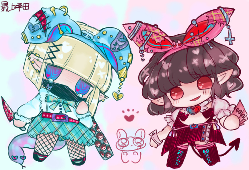 左 女装金髪ヤンホモ悪魔くん😈🔪 右 バニー黒髪メンヘラ無性別悪魔🩸🐰