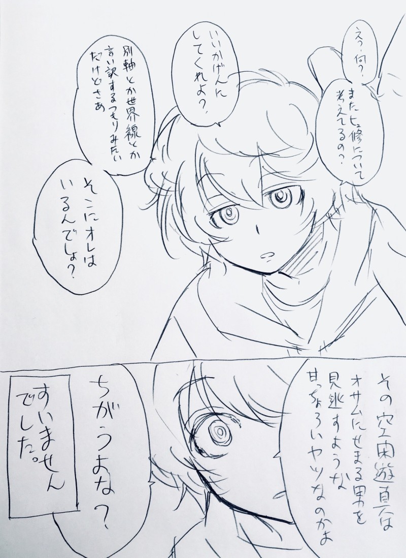 んでこの☆quiet followDOODLE※自分の脳内の話です※めっちゃらくがきですいません。どうしても描きたかった…そして私の中のヒュ修に決着がつきました…ヒュ修を妄想しようとすると、やはりゆーまさんが我が身を犠牲にしてでも阻止してくるので、自分で描く可能性はゼロに近いです… Tap to full screen (size:1536x2110).Repost is prohibited Let's send reactions! freqpopularsnackothersPayment processing Replies from the creator Follow creator you care about!☆quiet follow んでこのDOODLEちかちゃんハピバ絵を描いていたけど間に合わなかったので、したがきだけ置いておきます…近々色を塗りたい色ぬり下手だから意味ないかもだけど…塗りたい んでこのDOODLEまだ申し込んですらいないイベントで出すつもりの本の表紙を描き始めました。今からやれば絶対間に合うはず(フラグ) んでこのDOODLErkgk最後の一枚はそのうち描きたい、おさむくんの愛が重いゆまおさに巻き込まれるひゅーすくんのギャグです 4 んでこのDOODLE※自分の脳内の話です※めっちゃらくがきですいません。どうしても描きたかった…そして私の中のヒュ修に決着がつきました…ヒュ修を妄想しようとすると、やはりゆーまさんが我が身を犠牲にしてでも阻止してくるので、自分で描く可能性はゼロに近いです… んでこのDOODLE仕事忙しくてらくがきしてる余裕がないのですが、どうしてもらくがきしたくなってらくがき。リアクション下さる方、ありがとうございます元気です。ツイッターに浮上してないのは仕事のせいです…こういうときツイッター見ると自分の奇行を抑えられなくなるので我慢してます…。今月もう一度ワェ行く予定なので楽しみだ〜。 んでこのDOODLEすくえあ2月号を読んだらヒュ修について考えたくなった話。※遊修ですが、他カプ名が出てきます。※すくえあ2月号のネタバレがあります。※メタネタです。※描いた人間の心の中の話です。上記について、苦手な方はご注意ください。 4 recommended works auk_pPAST小ネタシリーズ、三枚目だけ色気の無いにょた 3 nobunaga49DONEおデート❤️ hiioMOURNING【後編】2015年くらいに描いたポエム爆発の創作BL漫画の後半(16p)を発掘…思い出の中でじっとしていてくれ...前編はこっち➡https://poipiku.com/45195/211007.html 16 wawawaPAST1日遅れ 2 千三百一DONEメモマメイカ(48)「モンスター」https://raiot.net/i/1568711380126 ドーロDONE芹沢さんが初めて一人で除霊に行った話です。何でも笑って許せる方向け😅💦 6 ハヤシ。PAST【ジェノサイ】ラブコメ ありす(元うさ実、マネキネコ)DOODLEBL落書き♡水彩筆の試し描きです☺️ ありす(元うさ実、マネキネコ)TRAININGいつも受けが女の子っぽくなるので、練習。「やめろよっっ」的な…。…しかしやはりまだ女の子っぽい…練習します。。🤲