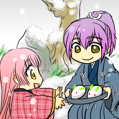 かわいい雪うさぎがふたつ、ならびました^^