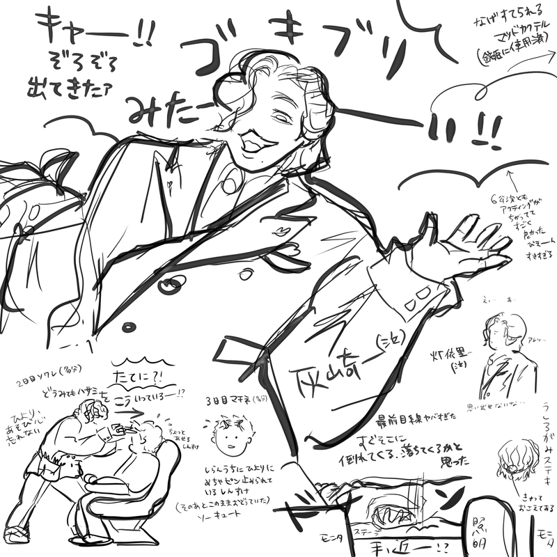 ダンスシーンでも日に日に手数を加えていってたし、お芝居も生き生きされてて毎回楽しみだった!一回きゃー!がすごく高いトーンで、続く台詞もややお姉様口調で煽ってたのとても良かったけどそれは一回だけだった。声が本当に良い、悪役の発声をこんなにたっぷり聞けて最高すぎた泣 最前は演者が膝に落ちてきそうで凄かったです…寶井灯依里と灰崎魔斗、最高のキャラクターでした