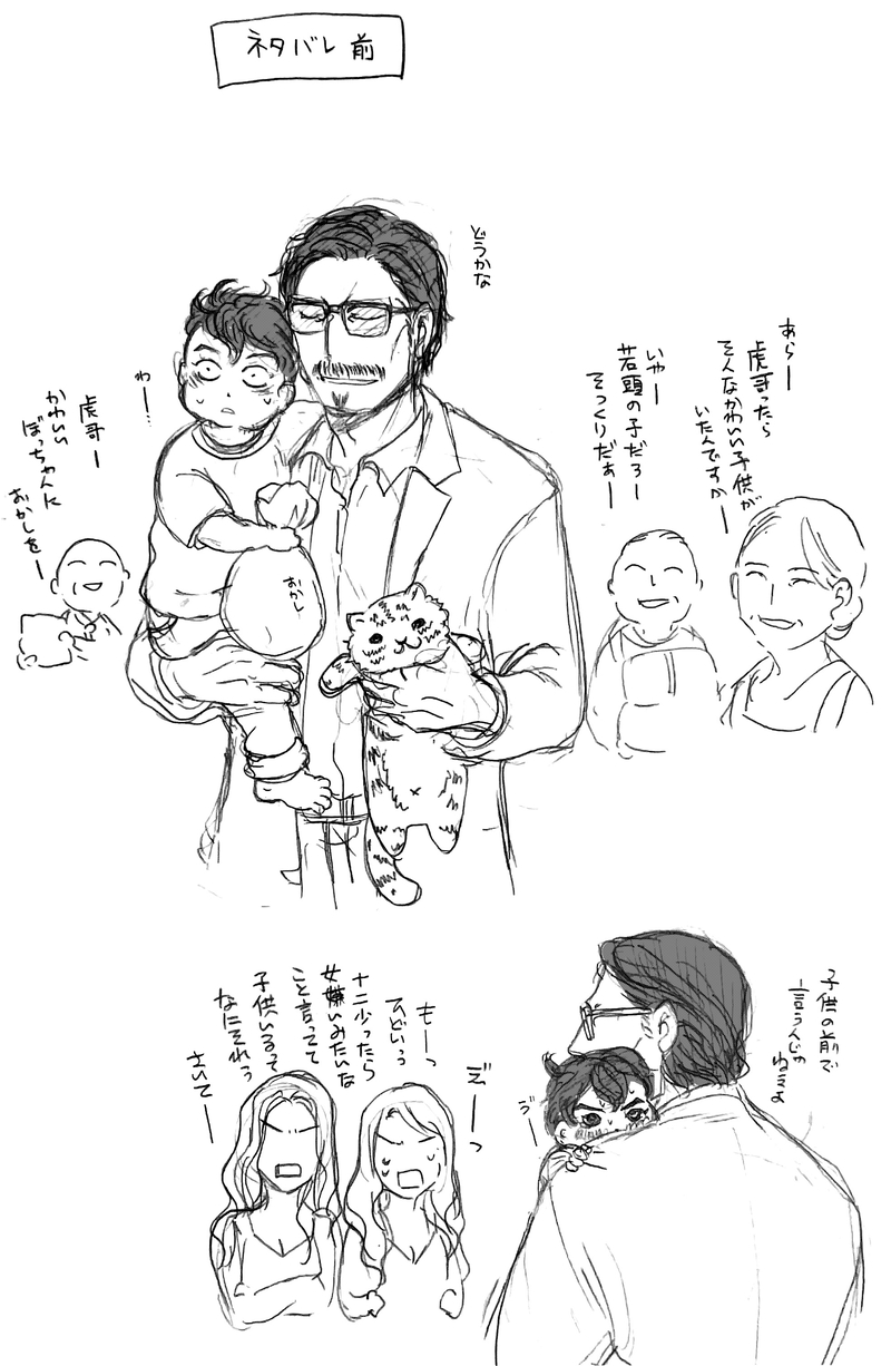 『突然五歳児になった十二を虎哥は黙ったまま抱っこして公園に連れて行き花壇の花を見せたり猫ちゃん見せたり街の人たちを(に)見せたりしてずーーーーーーっっと抱っこしてるので、中身は成人十二のままだなんて今更言えなくなる三少と虎組メンツと抱っこされてる十二』