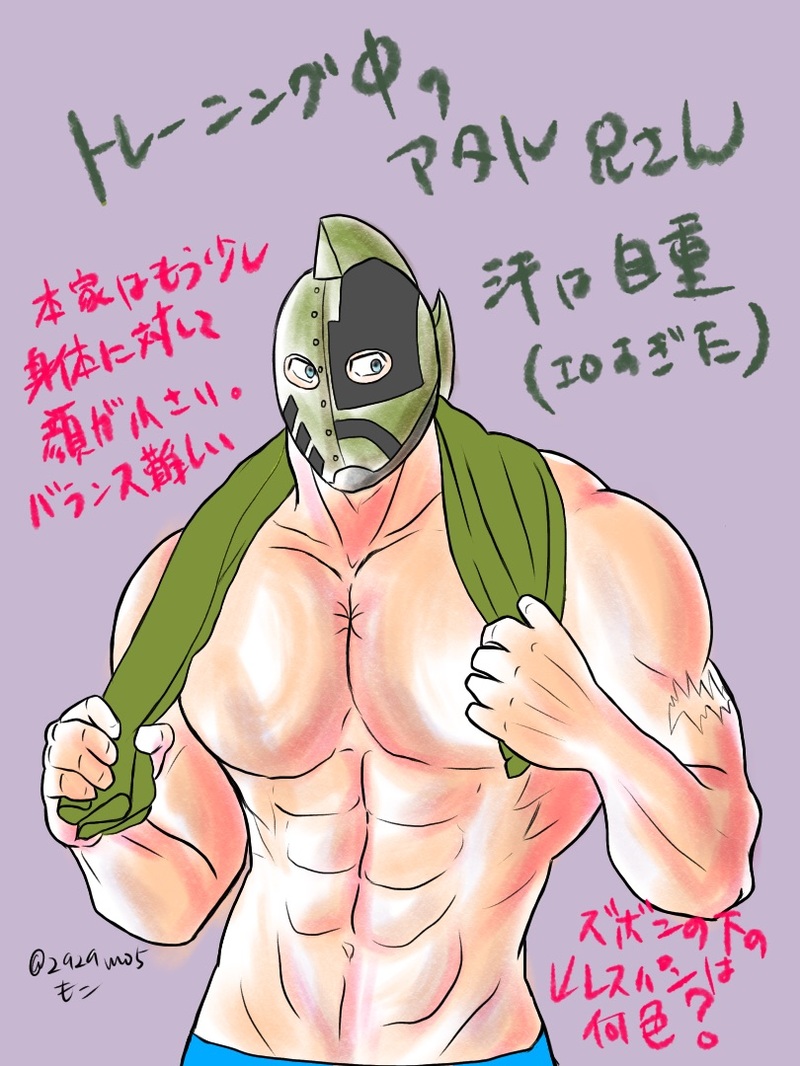 アタル兄さんが迷彩ズボンの下に履いているだろうパンツ(レスパン)の色についてずっと考えながら描き描きしていた。