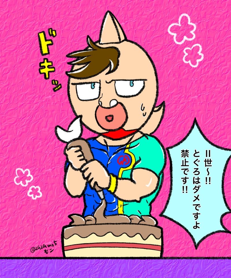 万太郎にチョコケーキのデコレーションをさせたら、こうなりそうだなー…という絵💩