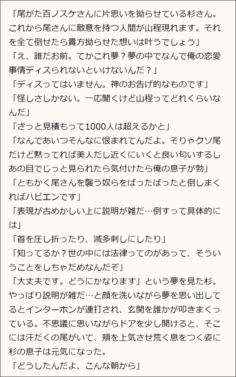 kito_kabe☆quiet followMOURNING最近広告でよくゾ〇ビものを見るのでゾ〇ビあふれる世界で暮らす杉尾の裏垢連ツイ供養 #杉尾 sugio show all(+3 images) Tap to full screen (size:1000x1600).Repost is prohibited Let's send reactions! freqpopularsnackothersPayment processing Replies from the creator Follow creator you care about!☆quiet follow kito_kabeDONE最終回アフターいきおいで連ツイした尾を夜明けに送り出す杉の話 1635 kito_kabeMOURNING4月1日と杉に翻弄される尾主任の連ツイまとめ(杉尾) 5545 kito_kabeMOURNING後に鬼つきおんみょーじと呼ばれる尾と、尾に使役される鬼の杉が出会うお話の連ツイ供養 2759 kito_kabeMOURNINGこめびつさんへ捧げた博多に行く白尾のお話です 2212 kito_kabeINFO8/21インテすぎおプチ無配SSの本文です。WHITEOUTのリブート版1話の序盤で、まだ尾は出てきていません。現在公開中の以前のものと見比べてちょっと変わったところとか変わっていないとこなどを見比べて楽しんでいただければと思います。 3878 kito_kabeINFO8.21インテの杉尾本サンプルです尾形主任に絶賛片想い中の杉元くんと、そんなことは露知らずほうじ茶に愛を注ぐ尾形主任のお話です。この本ではまだくっつきません。連ツイの禁煙編と書き下ろしの杉元視点を収録しています。 1784 related works 鈴野べるDONE「脆いのは春」SS名刺メーカーやってみたかった!覆水盆に返らずな杉尾 W55674570WDOODLE oishi03goldDOODLEうさぎ年なのでうさみみ尾のsgo漫画にエロを追加しました🐰◆作画修正&1ページ追加◆R18◆付き合ってないsgoバニーの日にアップした突然うさ耳が生えた尾が耳だけでイカされるお話🐰⚠︎あなたは18歳以上ですか? 4 kagisu0619DOODLETAIL 2 hisokuDOODLE作る料理がだいたい煮物系の尾形の話です。まだまだ序盤です。 3423 鈴野べるDONE事後の杉尾尾のからだはえっち 鈴野べるDONE「明けゆく」翌朝の杉尾 鈴野べるDONE乙女佐一と春のお菓子※現パロ 3 鈴野べるDONE先日お見かけした素敵な再会を杉尾で 7 recommended works 月夜見NつきよみDOODLE処女のくせに発言の前の出来事。処女とは知られたくない尾が痛いだけなの杉のせいにしてる感じ… yuzu541hqTRAININGちゅーする杉尾の練習あんまりイチャイチャしてなかったので頬染めてみた 3 hyoinu_picDOODLEsgoアホエロ謎時空落書き漫画以前Twitterで呟いたものを落書き漫画にしてみました。わからせと即堕ち2コマが大好きな上にSgoにはそれが死ぬほど似合う。18↑? 3 maamu31100TRAININGシュレディンガーの踊り説を提唱します18↑? 2 keu_raDOODLE執事に下剤入り🥧を食べさせてみた 2 みっけDOODLE漏らす尾形の天啓がありました。PW18歳以上(高校生不可)? 410 guj_xe2DOODLEクリスマス合作企画の絵たち 2 dorinco_chosDOODLEキューポまるしぇちゃん woaiimpala67REHABILI【凯撒洁】lucky bastard 12830