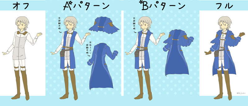 [2020/11/3未明差し替え]リゼルさんのお召し物、ずっとAパターンだと思ってたのですけど、Bパターンでは? となったので覚え書きがてら。上着が1枚透けるモノクルが切実に欲しいですね。