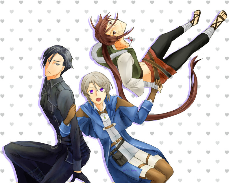 ヘッダー用に描いたもの、大きめ切り取り。休暇の三人組。