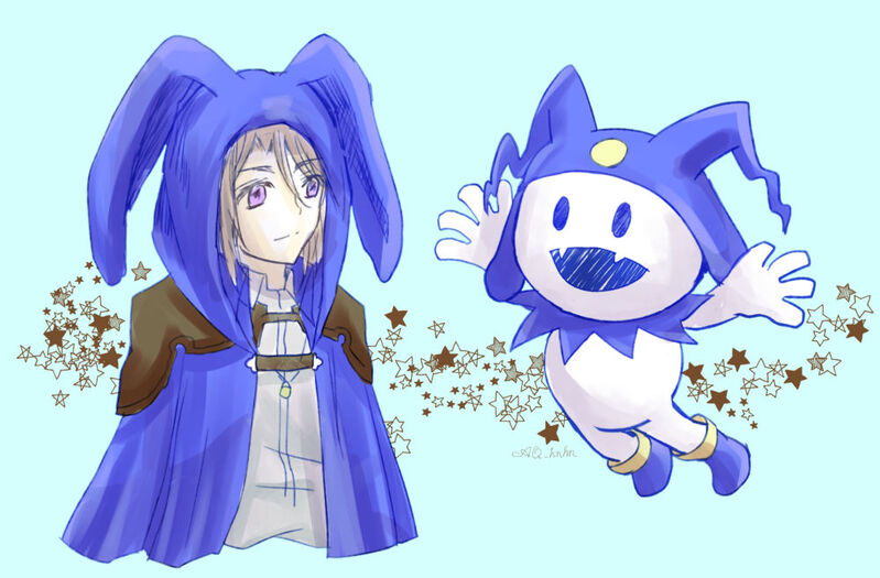 この間のうさみみフードなリゼルさん描いてて既視感あるなぁっておもってたけど、わかった、ジャックフロストくんだわ。(すっきり)