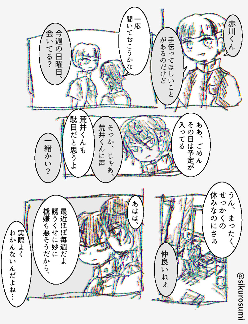 止黒 墨☆quiet followDOODLE落書き荒赤漫画、なるななのつもり。コマ割りというか構成を間違えた。 show all(+4 images) Tap to full screen (size:806x1052).Repost is prohibited Let's send reactions! freqpopularsnackothersPayment processing Replies from the creator Follow creator you care about!☆quiet follow 止黒 墨DOODLE袖赤壁釘漫画 14 止黒 墨PASTナポの荒赤漫画まとめ 8 止黒 墨TRAINING別の場所に投げていた600字ほどの短編詰め。CPは荒赤、袖赤 12 止黒 墨DOODLE新デザ赤川君良すぎる落書き(8/25)追加 3 止黒 墨DONEファミレスに行くなんでもない特編荒赤ゲーマーではない赤川くんにとって何もない世界。付き合っている。 11 止黒 墨MOURNING『誰の話を聞こうか?』展示漫画の荒赤殺クラ幽霊荒井×赤川 11 recommended works ★PAST「ニコニコするなよなクズどもが」なディオジョナ ★DOODLE昔描いた ★CAN’T MAKE描けねえっすよね ★CAN’T MAKE片思い中のディオ→ジョナ奥華子を聴きながら描いてた ★DONE自問自答 2 ★DONEお題「こども」「おとな」 kamidaDONE数万回は描かれてきたディオジョナ漫画 kamidaMOURNING 3 hug_tanaPAST始まりの二人。お互い向き合っているのに半分仮面を被っている関係性