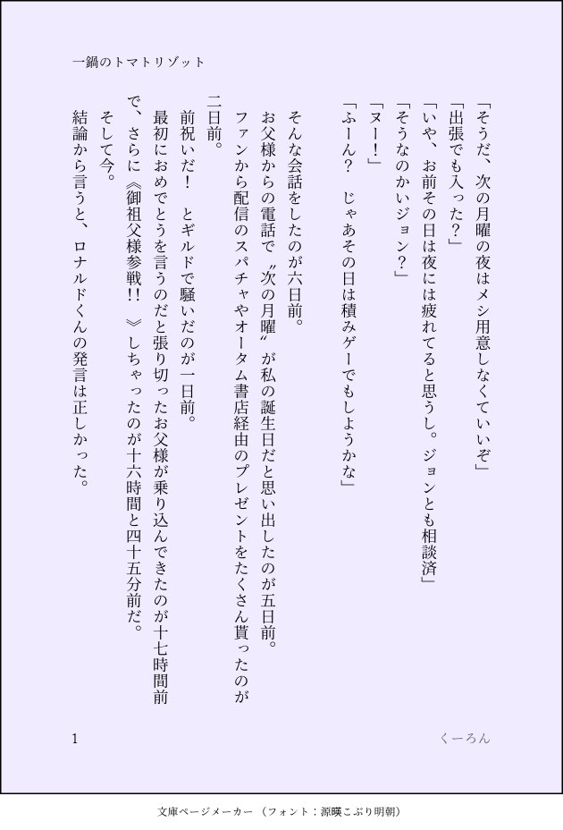 くーろん☆quiet followPAST誕生日なみっぴき小話ドラ誕、ヒナ誕、ジョン誕(ロナ誕今年追加予定)Twitterに乗せてたママなので誤字あるかもhttps://privatter.net/u/nekomata_tyu2 に微妙に修正したりしてなかったりするやつがあります show all(+28 images) Tap to full screen (size:630x928).Repost is prohibited Let's send reactions! freqpopularsnackothersPayment processing Replies from the creator Follow creator you care about!☆quiet follow くーろんDOODLE3枚目から326死ネタバレ感想含む 6 くーろんDOODLE去年の94の日の(遅刻の)やつをのせてなかったというか2024年のまとめしてなかった後半ほど雑 22 くーろんDOODLE放流してた周年祝い絵とロナ誕絵のちょとだけ画像大きくてほんのり修正したやつ 2 くーろんDOODLE1月の差し入れだったやつとか最近のらくがきとか 7 くーろんDONEョン誕生祭2025だヌ くーろんDOODLE超個人的ムー〇谷の住人と谷の比較9割主観奴 recommended works くーろんPAST #鼻息マルチャン1pisu 順次追加予定 12 ArueLiaVirus_DOODLE跟你说我昨天刷到俩超辣的主播 2 Hayaku_NeroDOODLE雑伊若干えろ🔞 isu_zusanDOODLE20,12,2024毎年この時期はクリスマスソング・ノイローゼなる21,12,2024何かまたdieする夢を見るようになってきた厳密には瞬間ではなく過程を見ているが、、やることが5億個あって、追い詰められているのかもしれない23,12,2024火葬したらどうしても散灰して欲しい 海とかにここに書いても仕方ない __senakoSPOILER16話のイスラルートがとてもとても好き hana_brachiDOODLE SachiDOODLE鯉月+ふぉぜ💜💚W過保護島。まぁ冷えてもたこ焼きは美味しいよ🐙 chiyomaru0327DOODLEささろ🎋🍮(とどひふ👔🥂)73 サトーボムDONEうれても企画ギフトトゥユーお題【夜明け✖️まなざし✖️背中合わせ】大正💎🔥のお話です⚠️パスワード18↑?(y/n)⚠️直接的な描写はありませんがR18です⚠️死ネタありますが、ハピエンですとても好きなお題で妄想が滾りました❗️素敵なお題をありがとう...🥰間に合わなかったけど、🔥さん目線も後日描けたら描きます‼️ 19