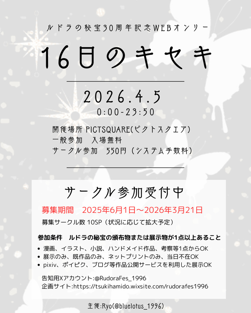 ルドラの秘宝30周年記念Webオンリー 16日のキセキ