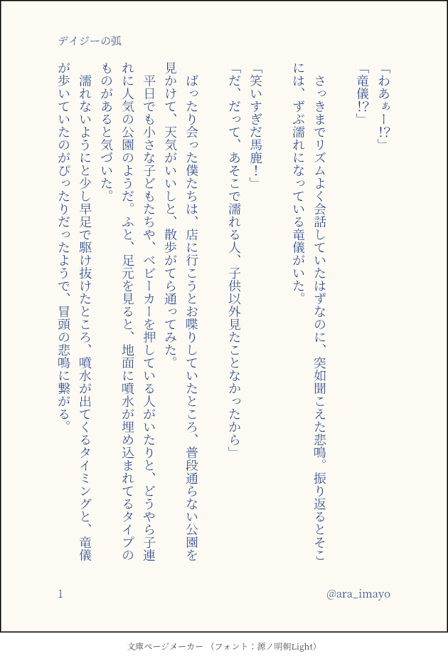 ara_imayo☆quiet followDONE企画参加しました🌼お題【デイジー】🦁と🦖は大人だけど、鬼ごっこしたり花に見惚れたりする話主催 よいち()さんありがとう〜ございます〜!! show all(+7 images) Tap to full screen (size:630x928).Repost is prohibited Let's send reactions! freqpopularsnackothersPayment processing Replies from the creator Follow creator you care about!☆quiet follow ara_imayoDONEおかえりなさい日々について想いを馳せる🦖の話 5 ara_imayoDONE企画参加しました🌼お題【デイジー】🦁と🦖は大人だけど、鬼ごっこしたり花に見惚れたりする話主催 よいち()さんありがとう〜ございます〜!! 8 ara_imayoDONE人と関わるようになって、いろいろ考えるようになった🦖さんの話。パスワード:50の放送時間を半角数字で入力してください⏰⚠️TTFC限定(補ジュウNo.8)のネタバレをガッツリ含んでいます。 4 ara_imayoDONE曇り模様な日の🦁と🦖の話梅雨時期の天気はコロコロ変わりますね 4 ara_imayoDONE子供の頃の話をする🦁と🦖の話星空に願い込めたり。 5 ara_imayoDONE凹んだ日の🦁と🦖の話 3 recommended works spi_ppyPAST今まで描いてきたもの。だいたいアニテでビーちゃんばっかり。 25 yukitori_rokkaMOURNING食われると思ってヒッてなる獪くんとか、ボツにした黒獪のらくがきなど。 2 DNanDOODLE NewRomanticismDONE 3chumosakuTRAININGポイピクを久しぶりに使いたいので、Xの方で上げてたやつでちょっと練習です🙏 3 🗝ち🦉DOODLEクル🦉✖️エレ🗝️はじめてのクリスマスまだ何も始まっていない 17 R7waterRxo9DOODLE跡塚らくがき ネコミミ塚が描きたかっただけ iw0510SPOILERラブレターフロムロラン現行未通過×2陣のらくがき絵と、エンドに適したスチルっぽくしたかったものです 3 Masumeno12DOODLEテルコ夢・2