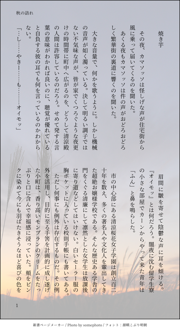 竹馬唐揚 たかこまにすっ転び青空で駄文製造機になっております。思いつくまま出力してます。お楽しみいただけましたら幸いです。 ☆quiet follow Yell with Emoji POIPOI 14