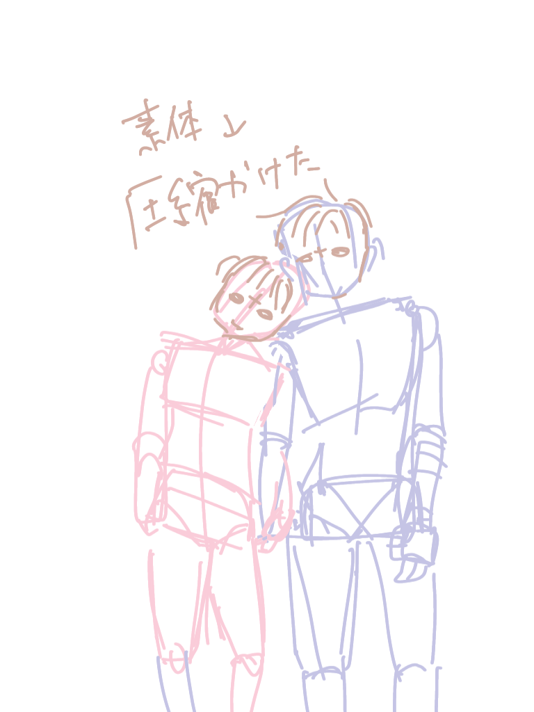 2、素体を縦に圧縮して一次ペン入れ。今の自分には一発で完成無理だと知った