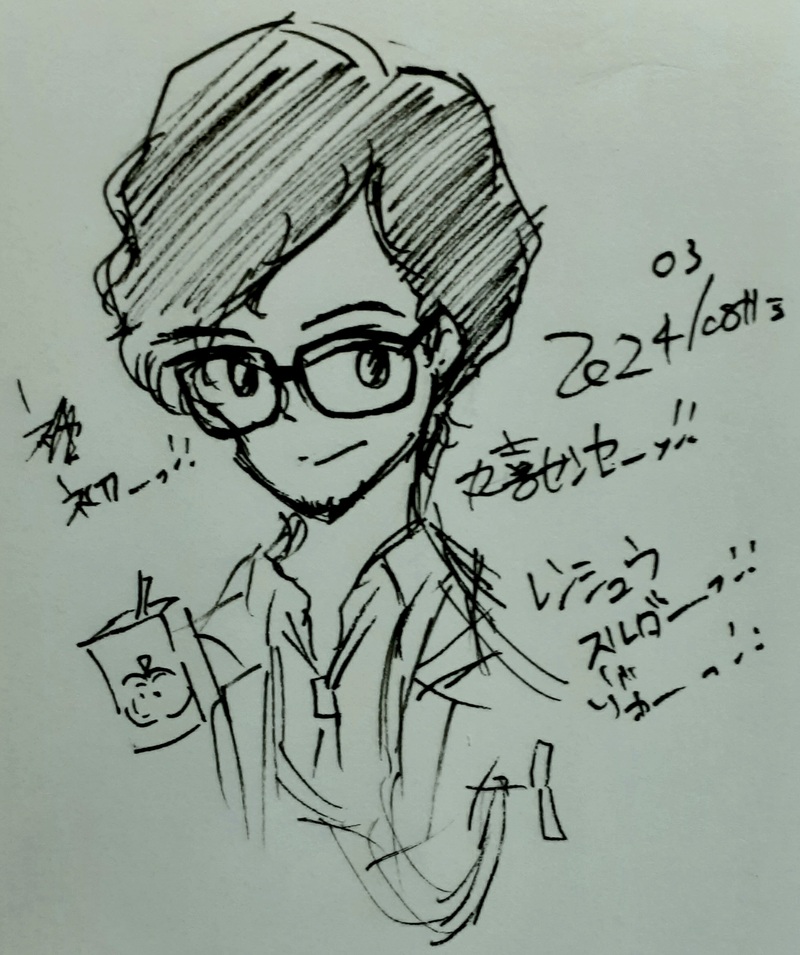 Syou_Time☆quiet followDOODLEP4Gをクリアした後、その流れでP5R(Switch版)を遊んでいます。その中に登場する、主人公の学校に赴任したカウンセラーの丸喜先生を描いてみた次第です|´-`) show all(+1 images) Tap to full screen (size:1981x2366).Repost is prohibited Let's send reactions! freqpopularsnackothersPayment processing Replies from the creator Follow creator you care about!☆quiet follow Syou_TimeTRAINING『UNDERTALE』に登場するフラウィと、『DELTARUNE』chapter3に登場するテナの自己練的なラクガになります( ˇωˇ ) 2 Syou_TimeDOODLEポケレジェZAに登場するカラスバさんのメガネストラップが気になってしまった、という話でした。 Syou_TimeDONEdrのcp3に登場するラムさんや、Cp2に登場するプラグボーイ、Cp1に登場するモンディを自分なりに描いてみた次第です( ˇωˇ ) 3 Syou_TimeDOODLEジークアクスとオリジンのラクガになります。1枚目は(自分が好きなキャラでもある、シャリアさんとハロが本編で会う事はあるのかな?)と思いつつ描いてました(横から見ているマチュとニャアン込)2枚目はオリジンを読み進めてゆく中で、遂にシャリアさんが登場する回まで辿り着いた後に描きました。隣には、ジークアクス(ビギニング)のシャリアさんをばです。3枚目は、ブライトさんとミライさん。 3 Syou_TimeDOODLE『機動戦士Gundam GQuuuuuuX -Beginning-』のラクガ、色々(初めて描いたキャラも居たりします)ネタバレ...といいますか、白ハロの表情について見てて気になった所をメモ書きしてる所があります(´-`).。oO 3 Syou_TimeDOODLE初描き、シャリア・ブルさん。そして、ハロ。『機動戦士Gundam GQuuuuuuX -Beginning-』から、シャリア・ブルさんとハロ。個人的に好きなキャラなので、また描きたい所存です(´-`).。oO recommended works unoDOODLEジョンが可愛すぎる kkringo0413PASTおひま? 2 やまおDOODLE吸死初描きがこれなの?!ファンブックのヴェントルーとタビコの項が良すぎて一度本を閉じて反芻しましたよね。18巻のヴェントルーかわいかった… 🏠ウチDONE たるひゃDOODLE吸血鬼すぐ死ぬのあけみさん。かわいすぎてこまる。いやいつ何時だってかわいいけど ボク㌨DOODLE きり_DOODLE不安を催す姿好き。 ふみか🍊MEMO🧛♂️ 4 お師匠PROGRESS