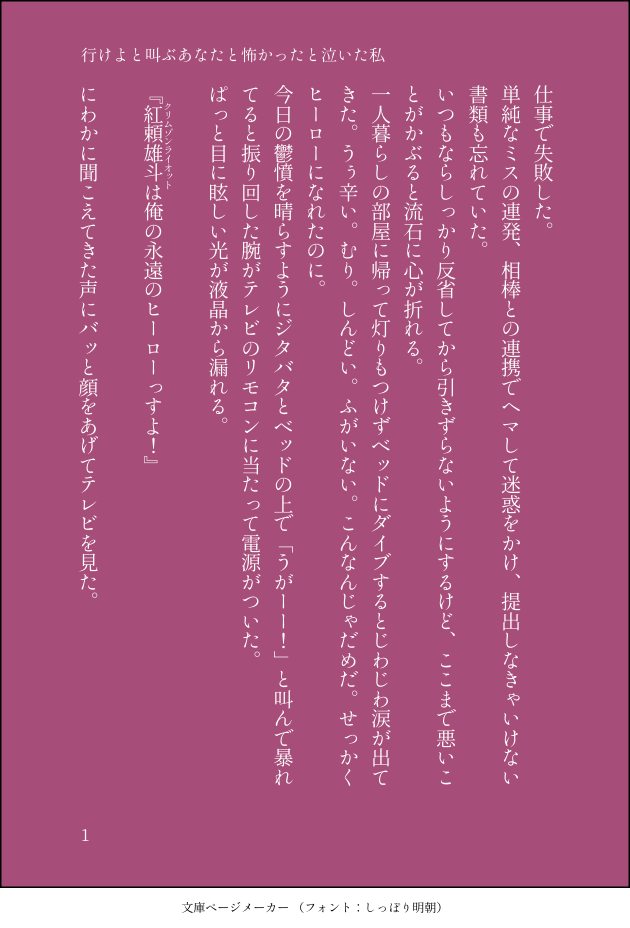 とりのせせり☆quiet followPASThrak 切島くんと芦戸ちゃん(心意気は切芦)(というよりむすたふ組)プロヒ新人時代 show all(+6 images) Tap to full screen (size:630x928).Repost is prohibited Let's send reactions! freqpopularsnackothersPayment processing Replies from the creator Follow creator you care about!☆quiet follow とりのせせりDONE立華兄妹の再会と真マコ。目が覚めないマコトを迎えに行ったのは真島さんの愛だったらいいな。ふわっと空間の話なのでふわっと読んでいただければ…… 12 とりのせせりDONEMHA 葉隠ちゃんの髪を切るかっちゃんの話(notCP)葉隠ちゃんの容姿バレ(?)があります 9 とりのせせりDONE本編から数年後 覚悟を決めた草太さんの話(草鈴/草すず)普通の青年だった草太さんと少し大人になった鈴芽ちゃん 4 とりのせせりDONE吸死 ブロマンスのロナドラいつかくる別れの日のにっぴき 5 とりのせせりDONE本誌注意 No.322前提の妄想洸汰くんとエリちゃんと彼らのヒーロー 2 とりのせせりDONEネウロ(ネウヤコ)魔界に深呼吸しに帰った後の再会までネウロとヤコの関係性が……すき…… 2 recommended works ごん@ツイッターDOODLE #轟焦凍 #ヒロアカイケメンは何着ても似合うなあ ririyqPAST※腐、女装有り#ヒロアカ (上爆、切爆) おそ松さん(カラトド) オルフェンズ(アスタカ)ヤリ雌(玲二くん女装) ミスフル 11 猫川くんDONE夕焼けトド様 #ヒロアカ #轟焦凍 しばねこDONE今年もよろしくお願いします 10gintaPASTおちゃこちゃんrkgk かいとDONE夕日がテーマの絵いつもノーマルカラーなので色味変えてみました下書き→背景→完成 3 しばねこDONE女装撮影中の轟くん そーまこーたDONE最終回のエンデヴァーかっこよかった…4期はどの話も大好きすぎるてしぬる…そんな荒ぶる感想を勢いで表現しました、勢いです、勢いで、勢い風にあああ、ワイ推しアニメが一気に二本も…これから毎週何を支えに生きていけば…(ロスし ひらがないさなDONEかっちゃん!誕生日おめでとう🎉