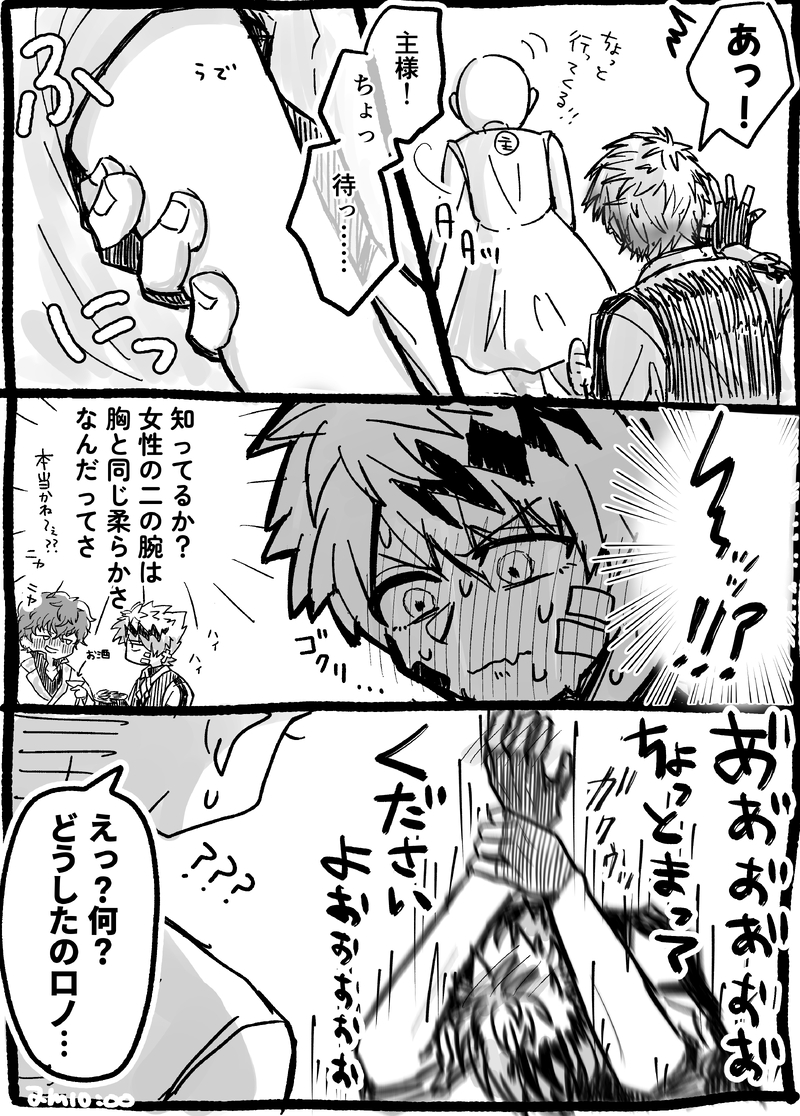 そろそろ暑くなってきたし、こういうことがあってもいいよな〜(よくない)と思って描いた漫画です。私はどうしても🍽️くんに(💍様限定で)思春期でいて欲しいと思ってしまうのです……